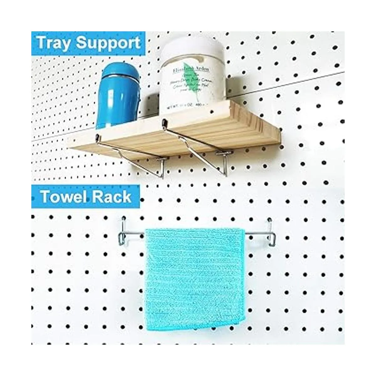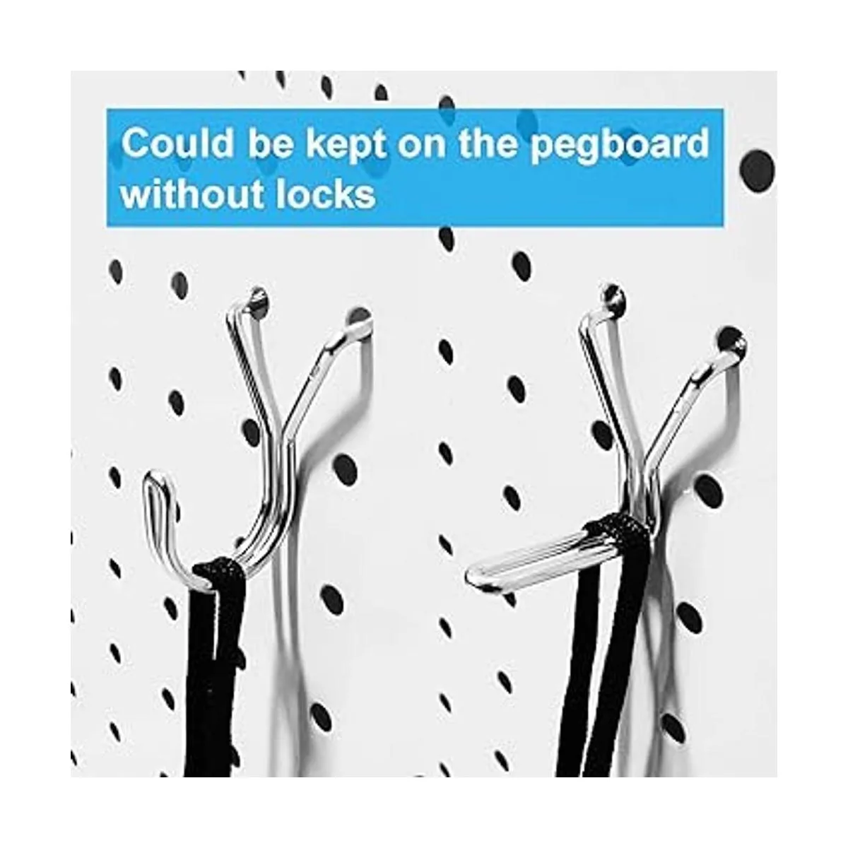 Estos ganchos de dos puntas se pueden mantener en el tablero de clavijas sin cerraduras.