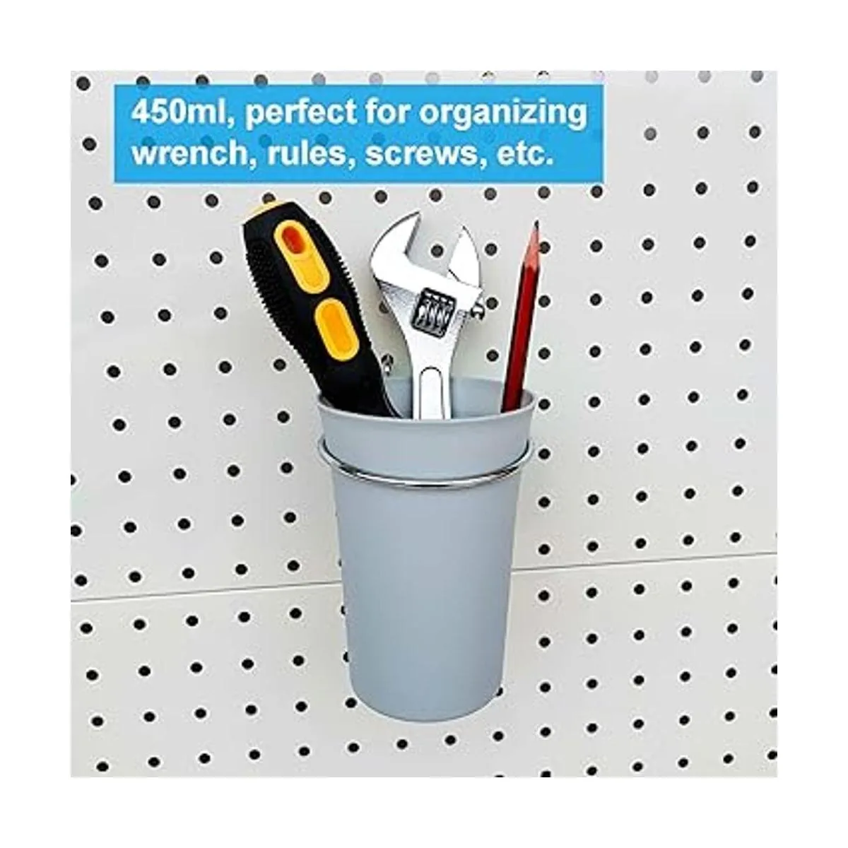 El soporte de plástico forma de taza tiene una capacidad de 15.2 fl oz, perfecto para organizar tornillos, llaves, tijeras, bolígrafos, reglas, etc.