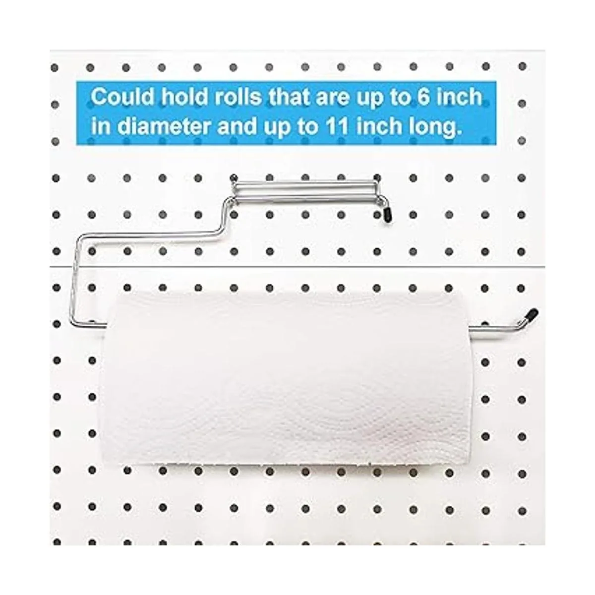 El soporte para toallas de papel puede contener rollos de hasta 6 pulgadas de diámetro y hasta 11 pulgadas de largo.