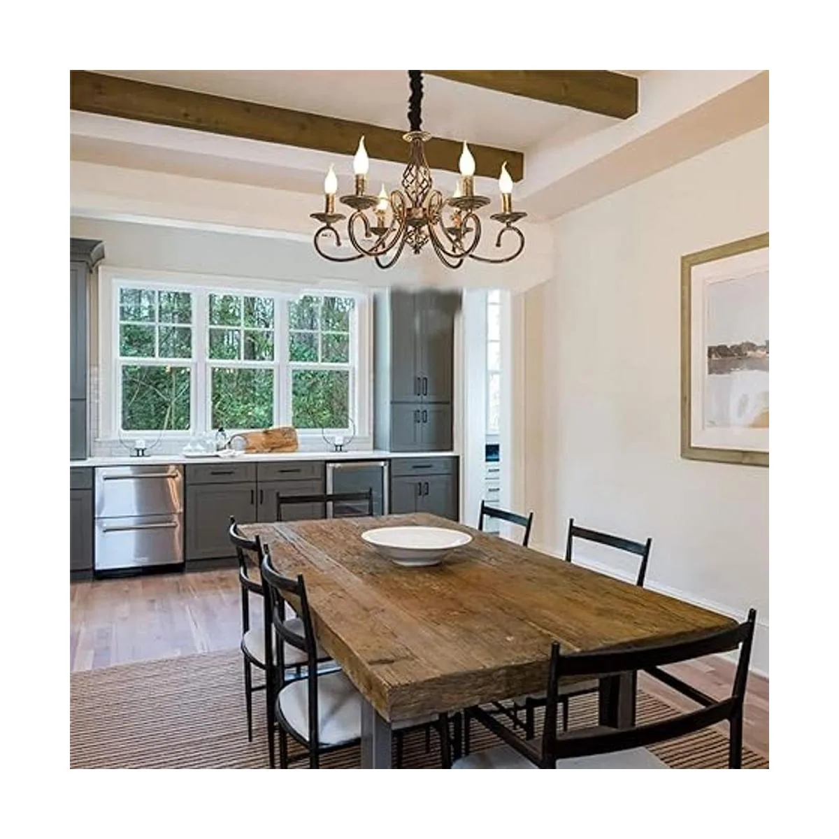 Ganeed Lámparas rústicas de 6 luces, candelabro vintage de campo francés, candelabro colgante de metal en bronce antiguo, lámpara colgante para isla, cocina, granja, comedor, sala de estar