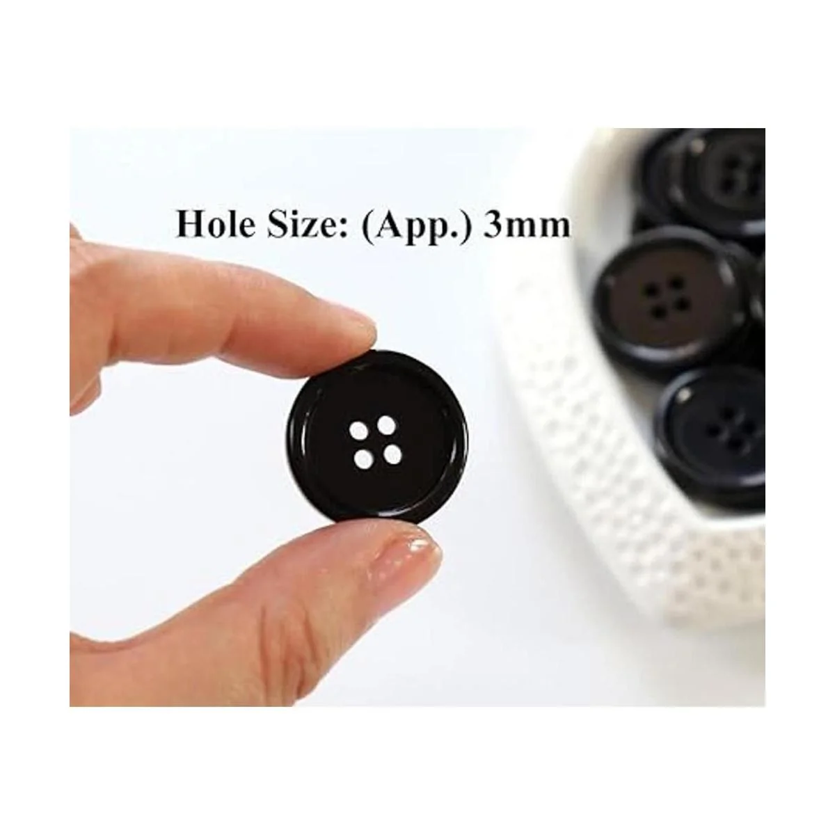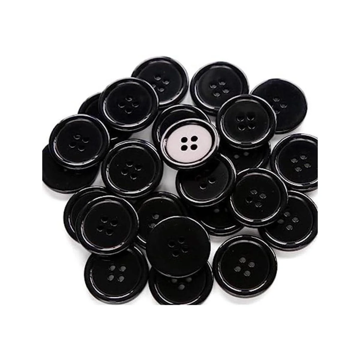 GANSSIA Botones de resina negra de 1 pulgada 0.984 in para coser, botón de parte trasera plana para ropa, decoración de manualidades, paquete de 50 unidades