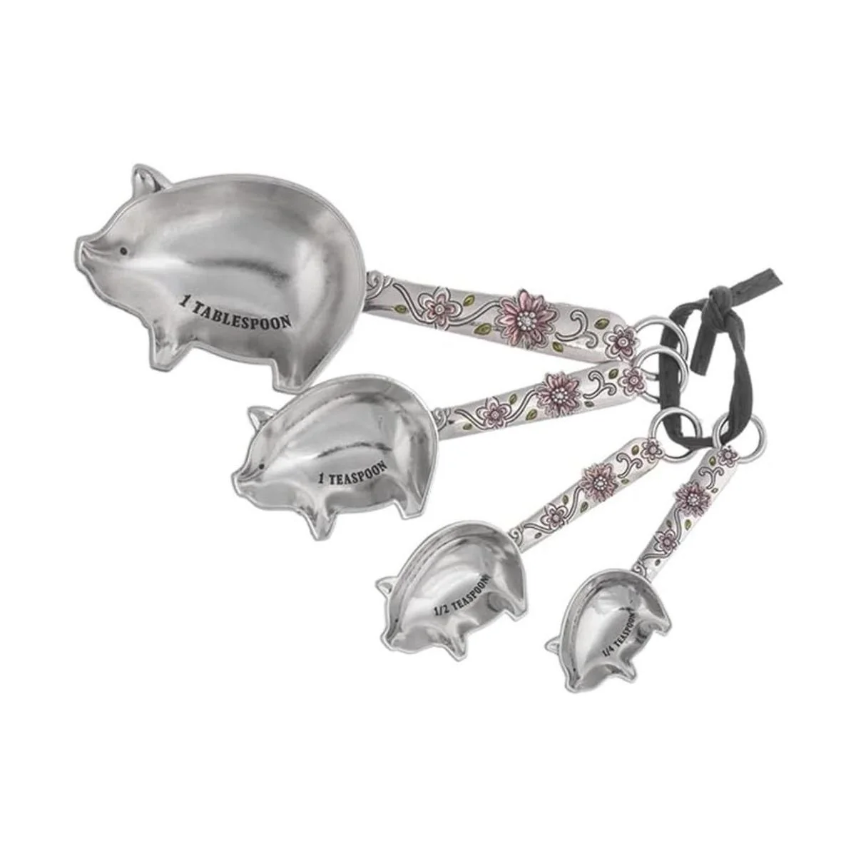 Ganz Juego de cucharas medidoras de 4 piezas, cerdos de granja con flores