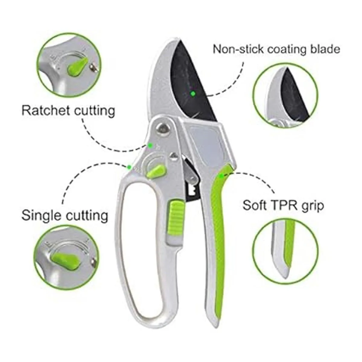 Garden Guru Tijeras de podar de trinquete 2 en 1 para