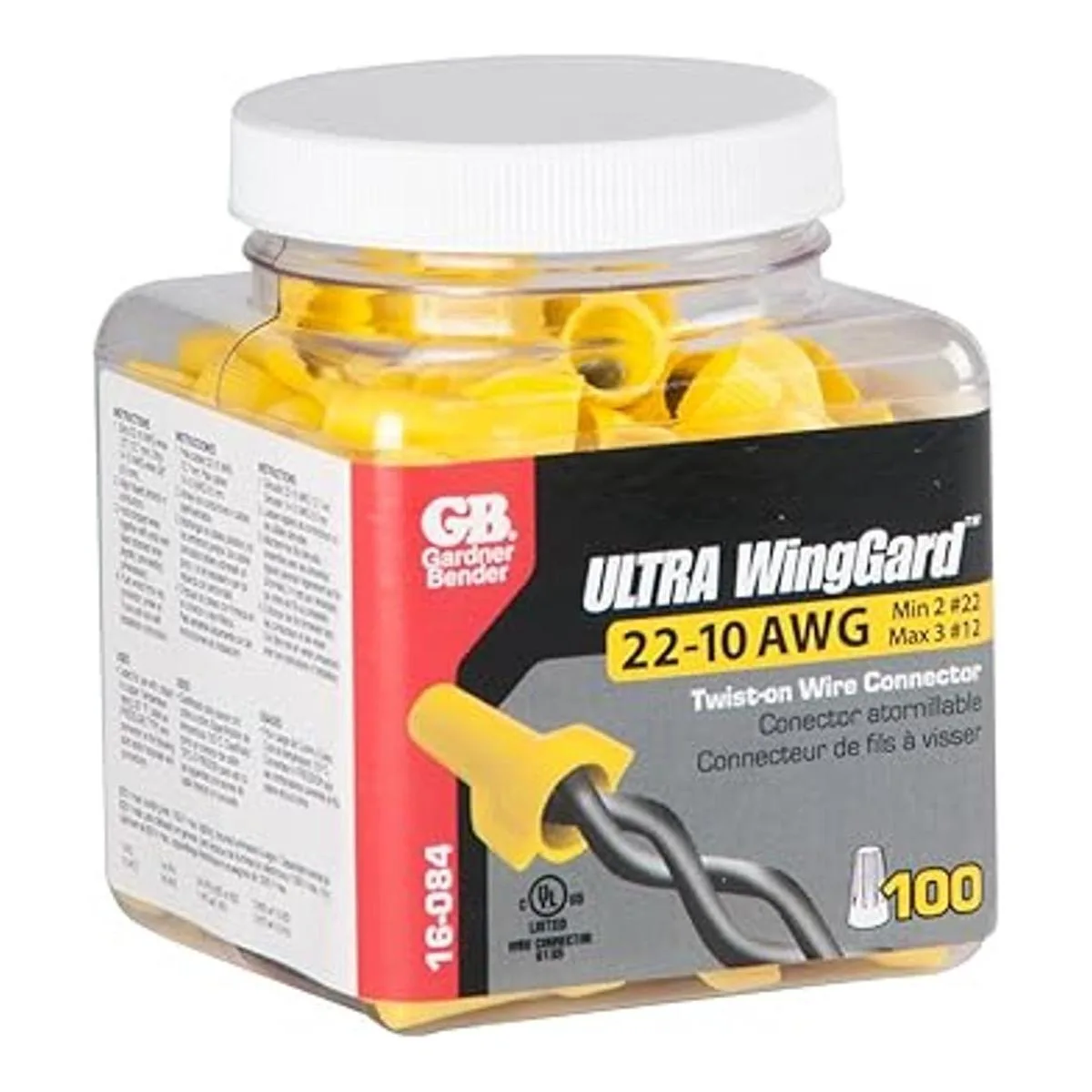 Gardner Bender 16084 WingGard Conectores de alambre giratorios, 2210 AWG, eléctrico, paquete de 100, amarillo