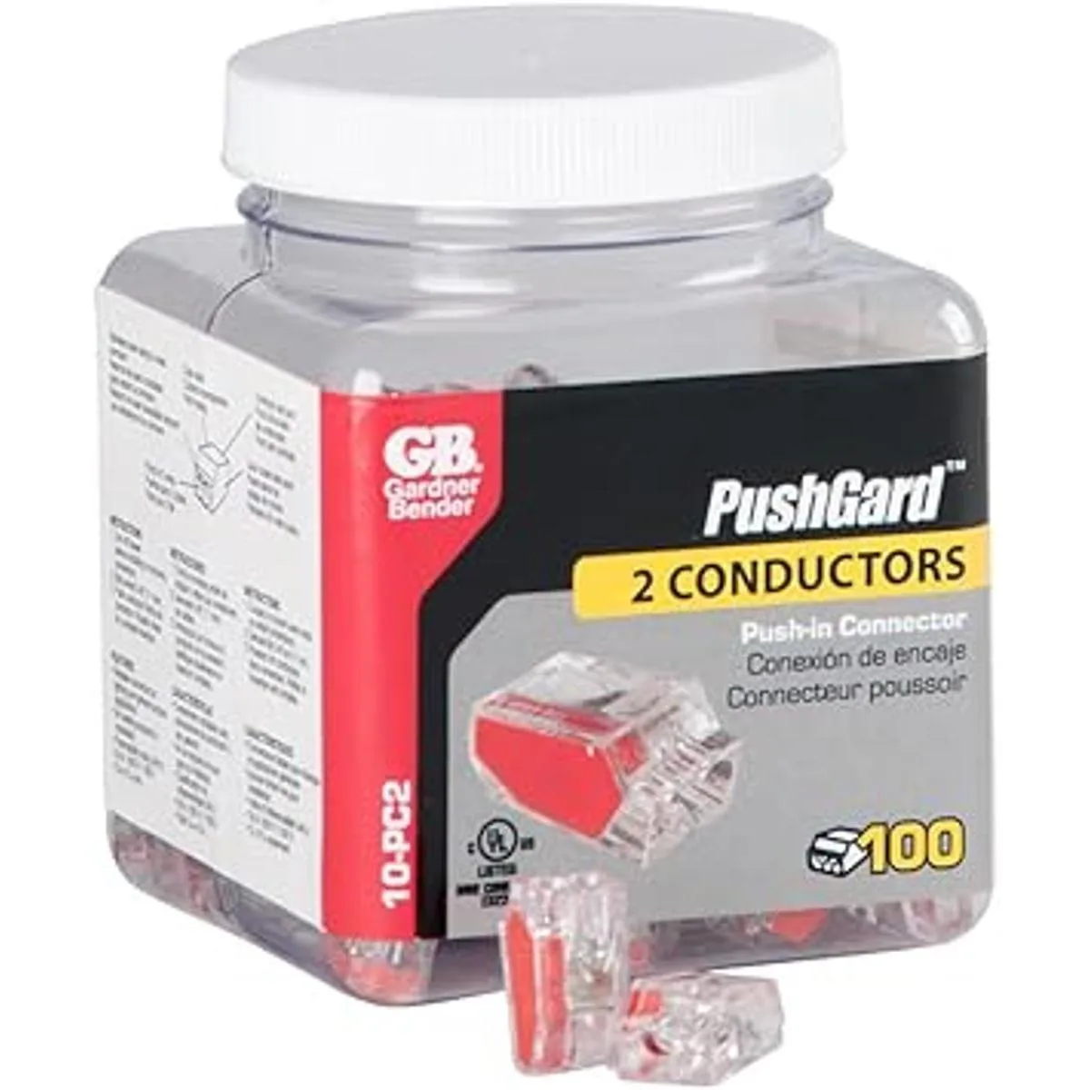 Gardner Bender, Red 10PC2 PushGard Conectores de cable eléctrico de 2 puertos, 2212 CAE sólidos, 100 unidades, paquete de 100 unidades