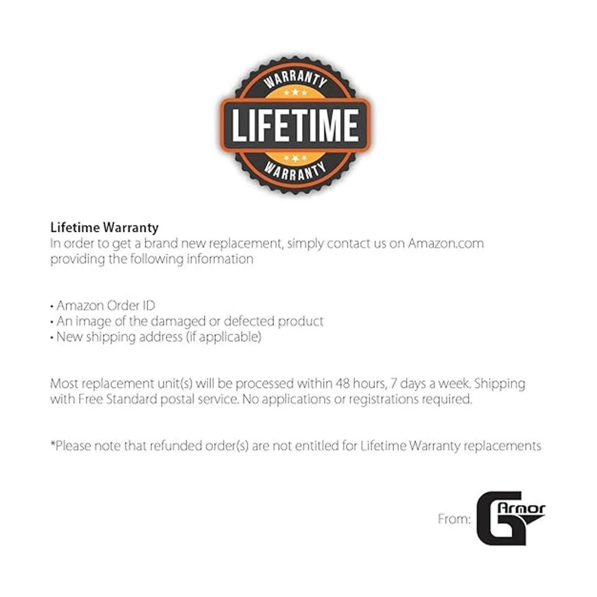 Garantía de por vida sin complicaciones. Simplemente ponte en contacto con nosotros proporcionando el ID de pedido de para un reemplazo de protector de pantalla, no requiere registros ni rellenos de formulario