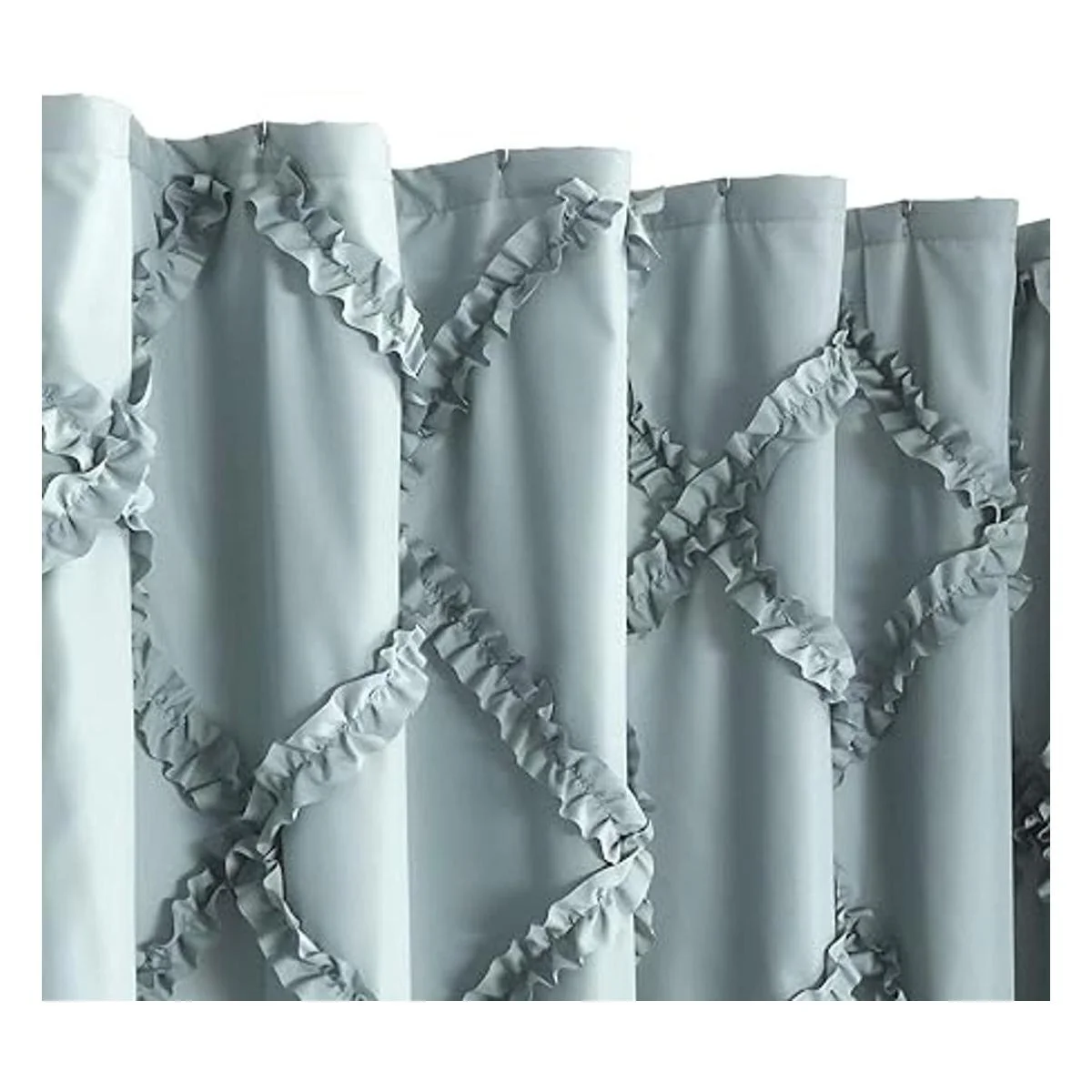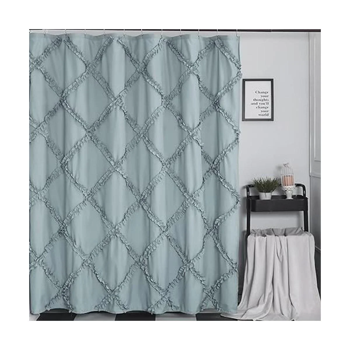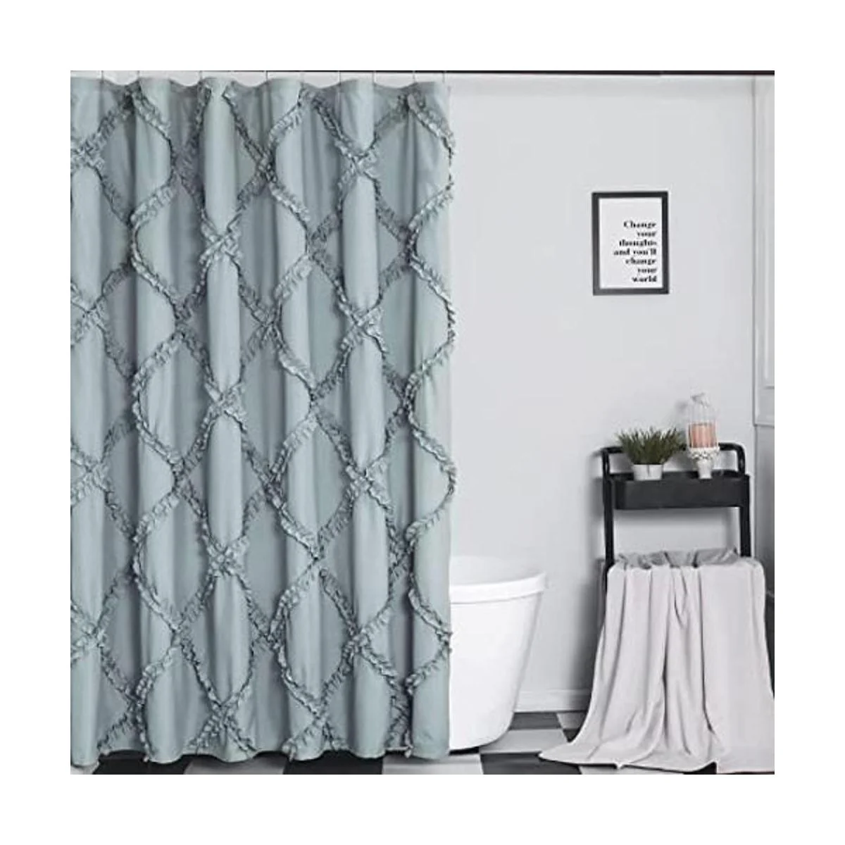 GARSTYLE Cortina de ducha de tela de diamante con volantes color gris claro para baño, estilo rústico de 72 x 72 pulgadas