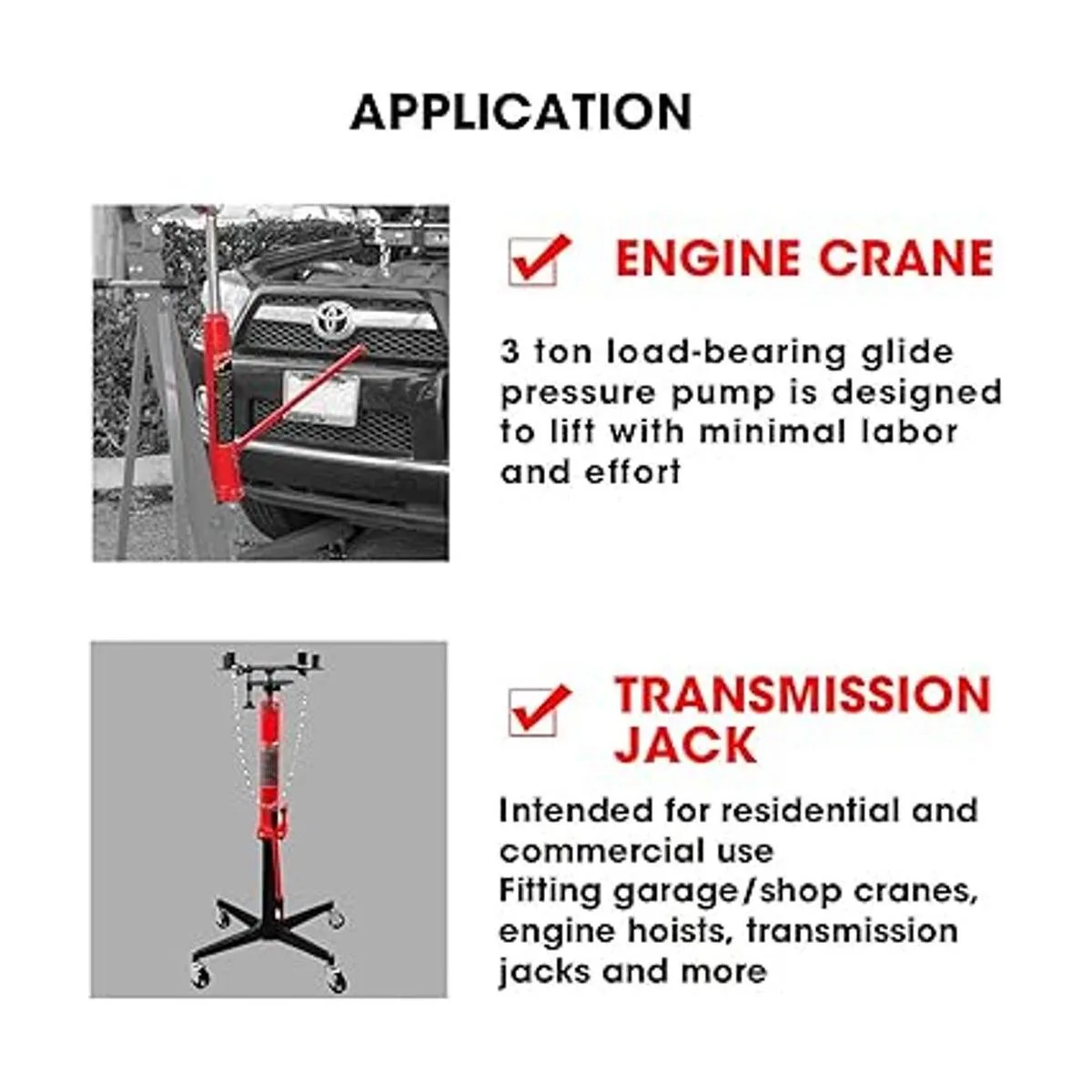 Long ram jack is constructed of heavyduty steel with a heattreated chrome cylinder for added strength; Fits most garage/shop cranes, engine hoists, and more