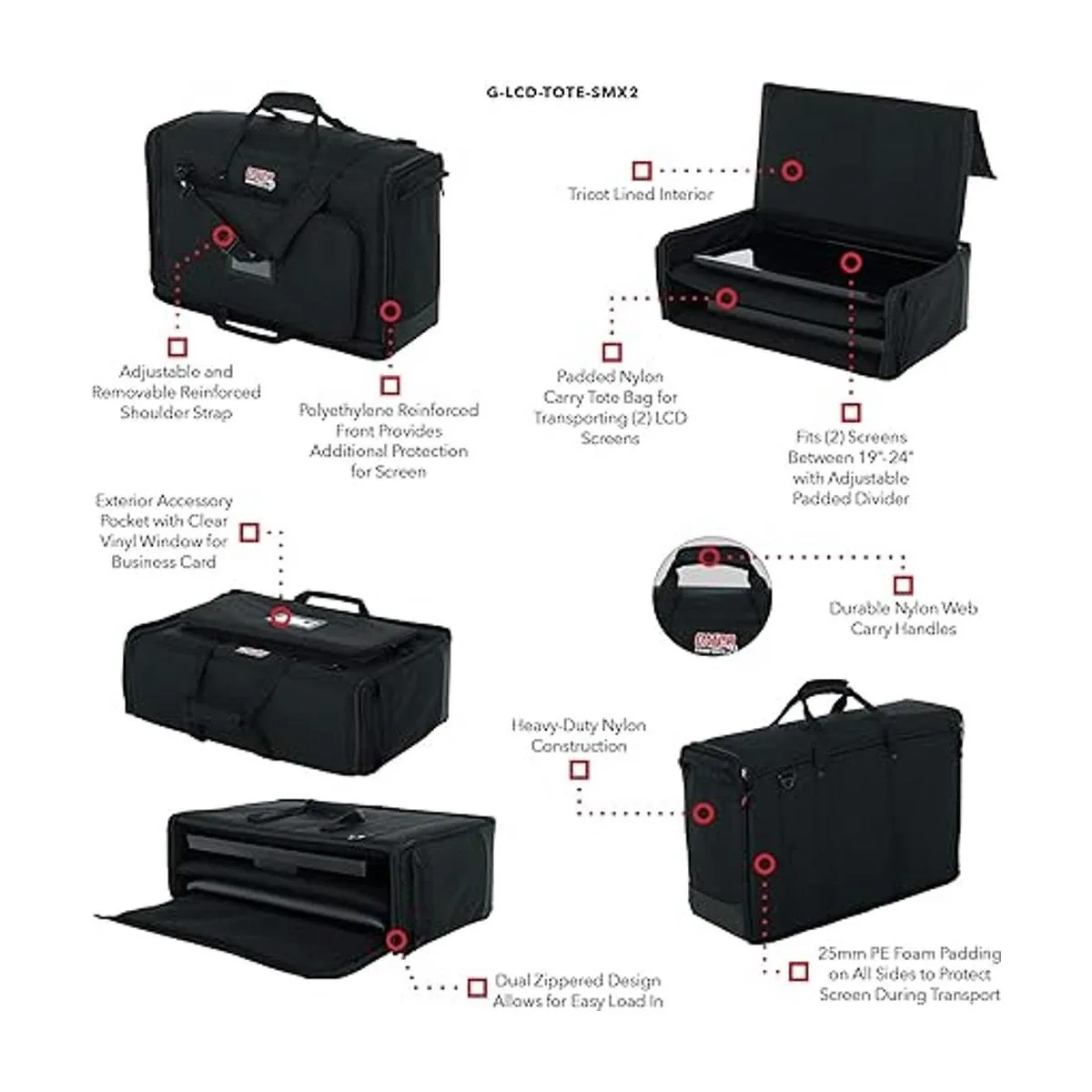 Gator Fundas acolchadas de nailon doble para transportar 2 pantallas LCD, monitores y televisores entre 19 24 pulgadas GLCDTOTESMX2