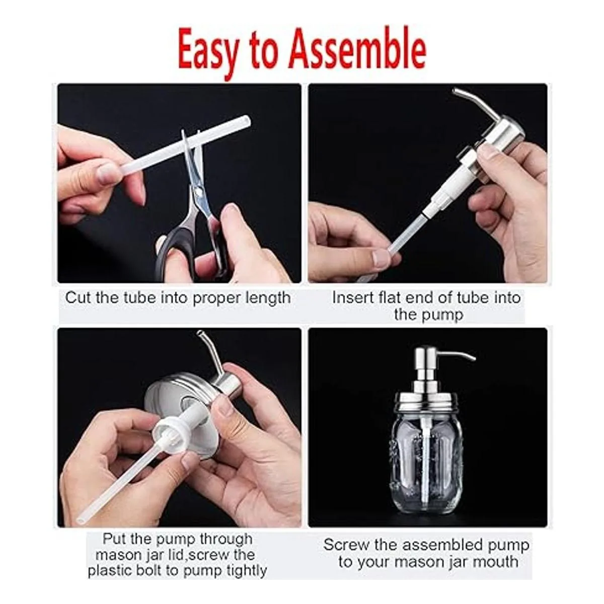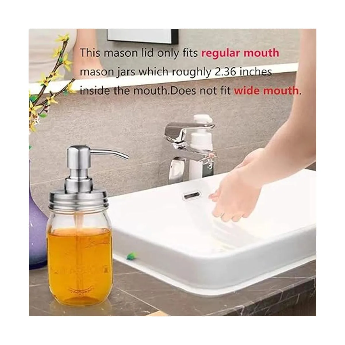 Duradero y resistente al óxido: la tapa de la bomba de tarro Mason y las bombas están compuestas de acero inoxidable 304 recubierto. Este dispensador de jabón incorpora una bomba de plástico de alta calidad, que hará que la distribución sea muy equilibrada. Sin fugas y sin goteo. La bomba se puede presionar más de 10.000 veces en prueba de prensado.