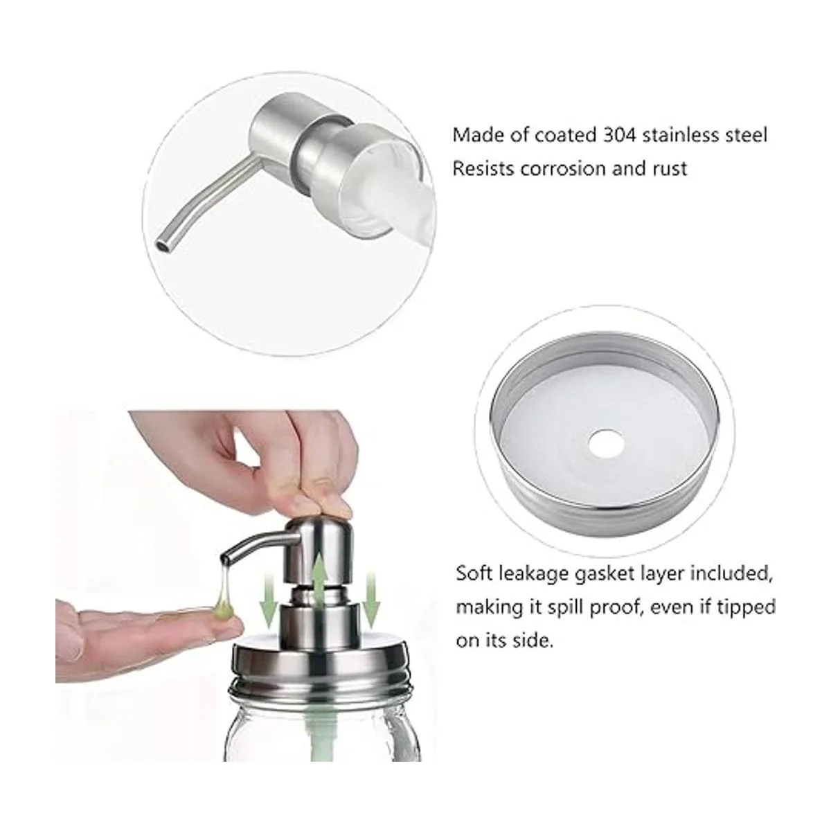 Gawon Paquete de 2 dispensadores de jabón líquido Mason Jar con tapas de repuesto para mano de acero inoxidable a prueba de fugas, tamaño regular de boca, juego de dispensadores de loción moderna de granja para cocina, baño