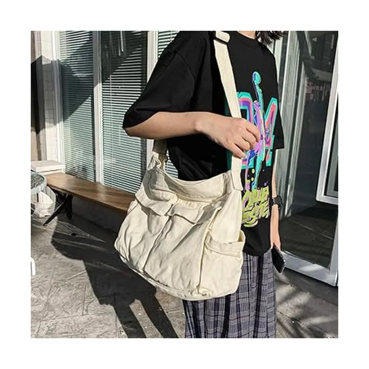 GAXOS Aesthetic Crossbody Bags for Women Cute Vintage Canvas School Handbags Laptop Large Shoulder Bags