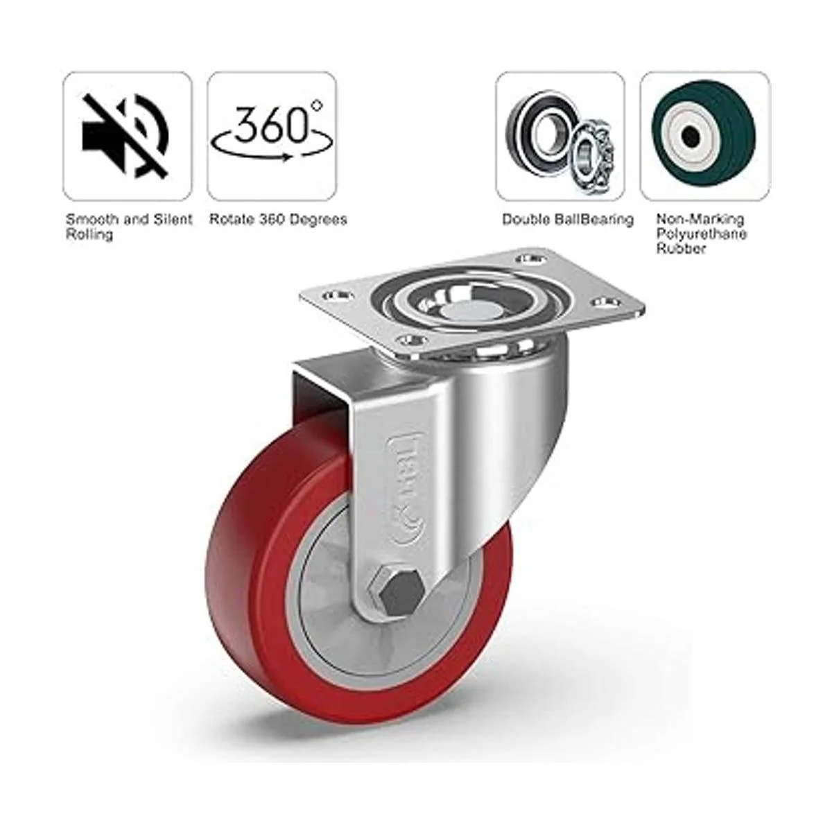 Flexibilidad y seguridad: las ruedas de banco de trabajo de poliuretano ofrecen la elasticidad de las ruedas de goma combinadas con la dureza y durabilidad de las ruedas de metal. La rueda giratoria GBL sin frenos es segura para todos los tipos de suelo. La capacidad de carga de 1320 libras 330 libras por rueda.