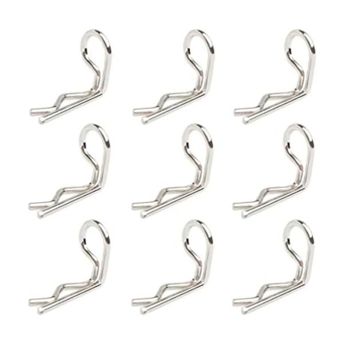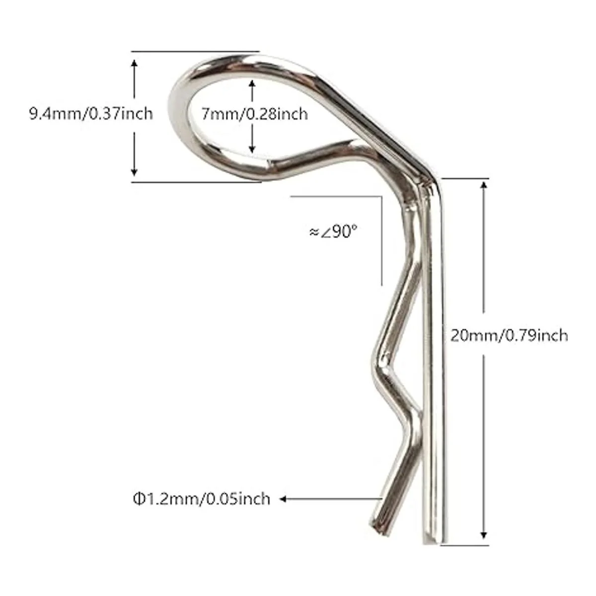 Especificaciones de los clips de cuerpo: longitud total: aproximadamente 0.957 in; diámetro de la barra de clips RC: aproximadamente 0.047 in; diámetro del anillo: aproximadamente 0.236 in.