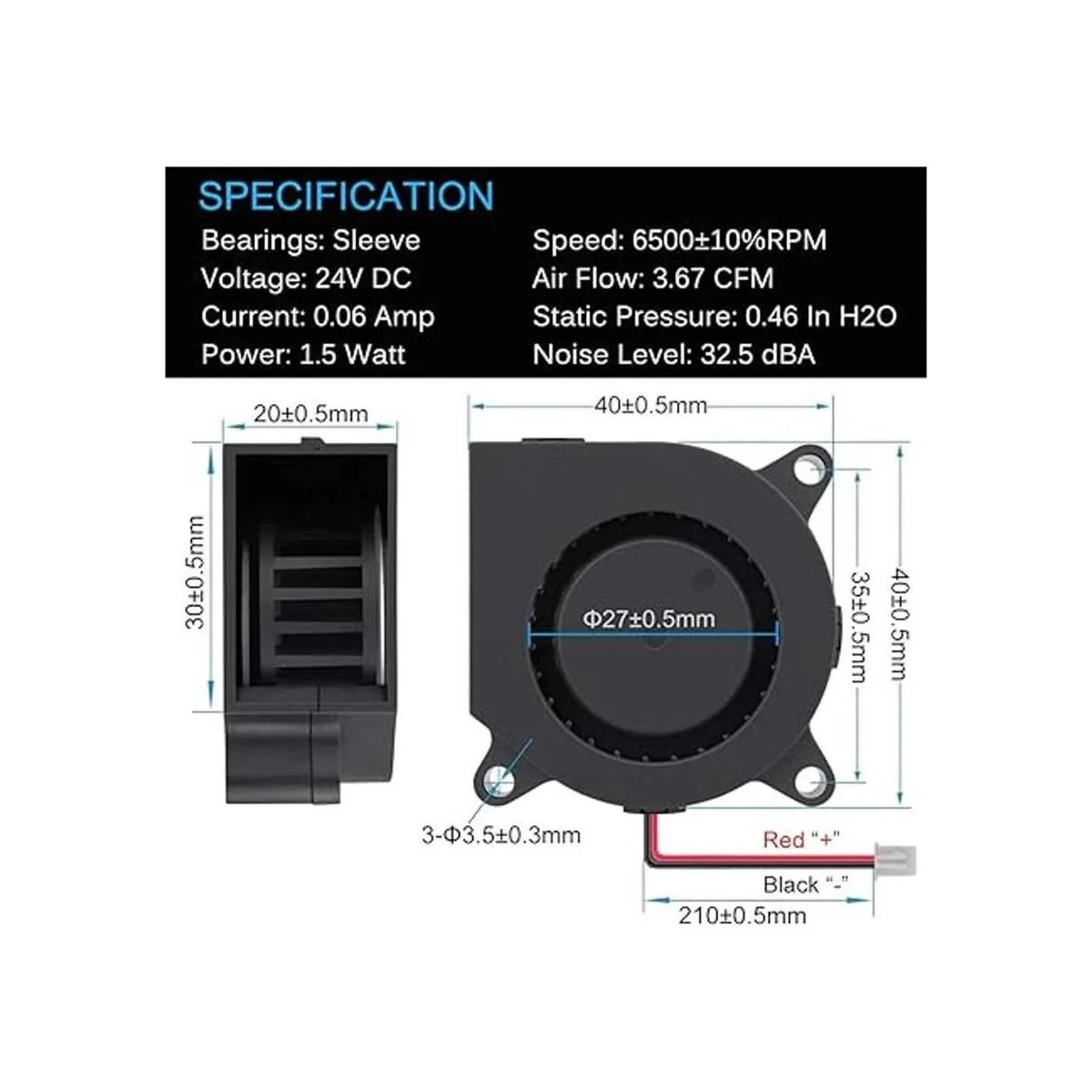 Fácil de instalar: tamaño del soplador: 1.575 in de largo x 1.575 in de ancho x 0.787 in de alto, tamaño de entrada de aire: 1.063 in, tamaño de salida de aire: 1.181 x 0.787 in, paso del agujero de montaje: 1.378 in; temperatura de funcionamiento: 14 F a 175 F