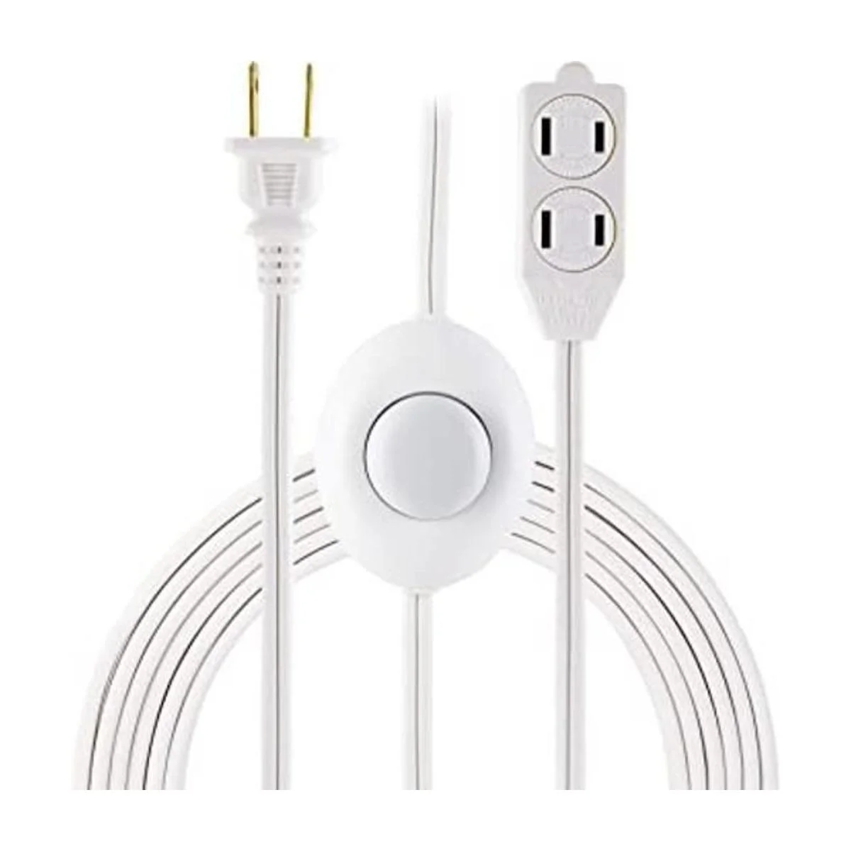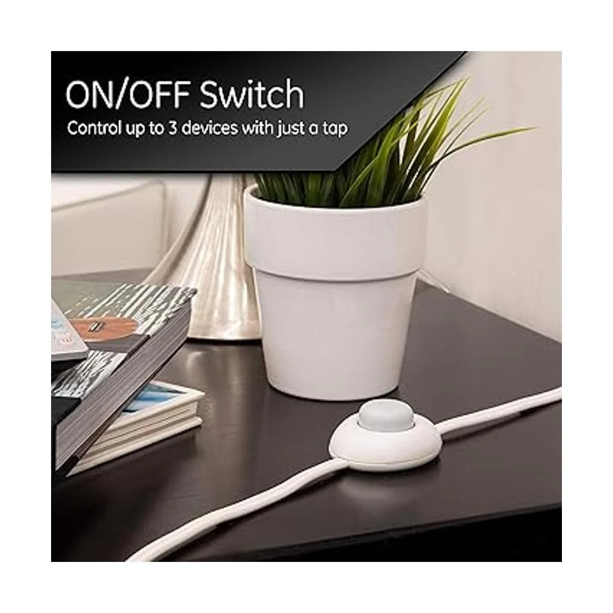 GE 42803 Cable de extensión de 3 salidas con interruptor de encendidoapagado, perfecto para lámparas, luces de vacaciones y Navidad, 9 pies, color blanco