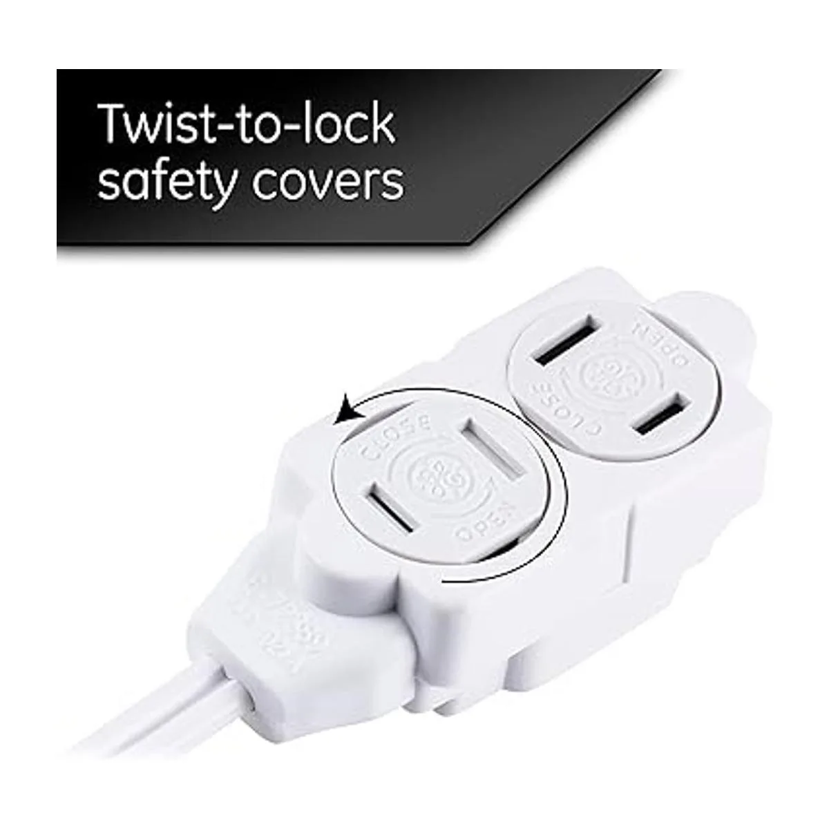 GE Cable de extensión, tira de alimentación, punta, calibre, tapas de toma de corriente de seguridad de giro a cierre, clasificación para interiores, perfecto para el hogar, oficina o cocina, listado UL
