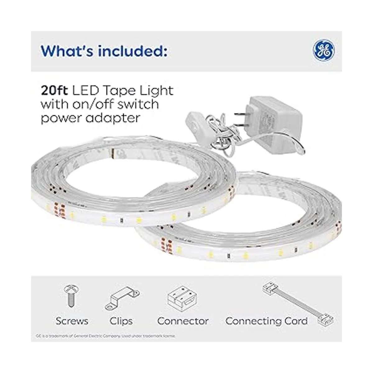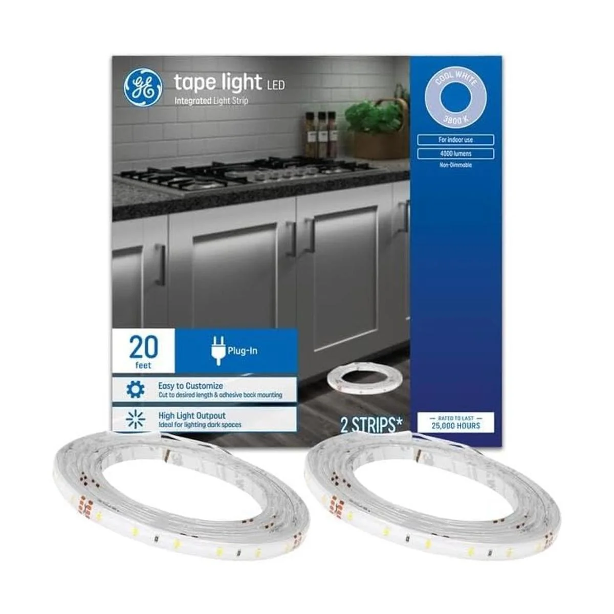 GE Cinta de luz LED, color blanco frío, 20 pies, enchufable, uso en interiores, 42 vatios paquete de 1