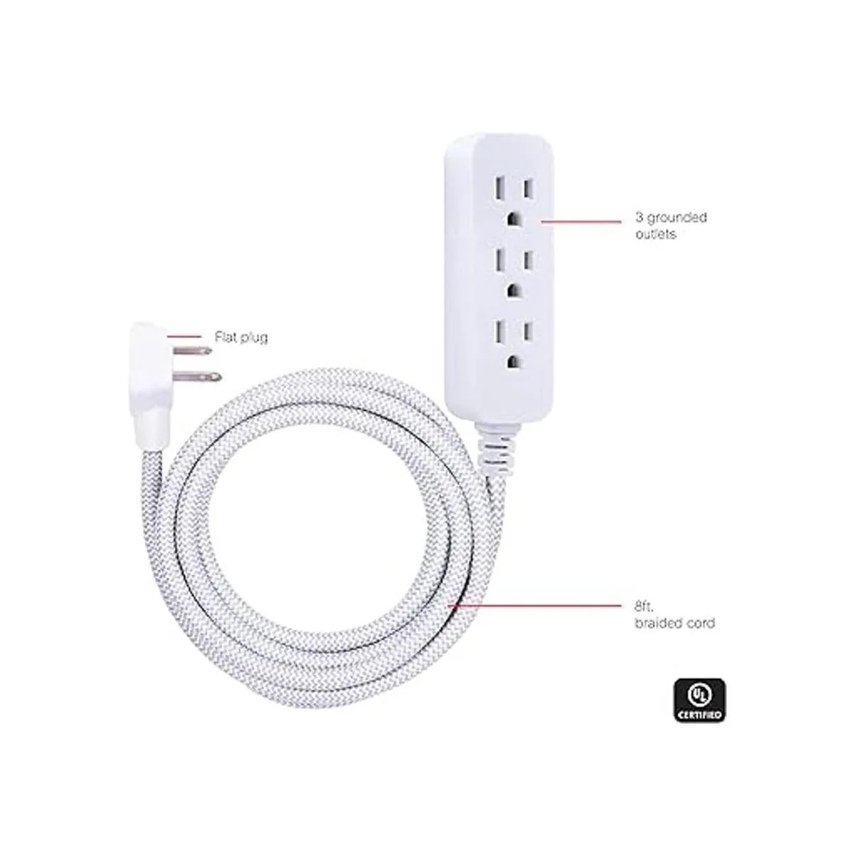 Decoración: el cable de alimentación de tela trenzada viene en un patrón de cheurón gris y blanco que puede añadir un toque personalizado a la decoración de tu hogar u oficina. El enchufe y las salidas de esta unidad cuentan con un acabado blanco correspondiente para acentuar aún más el esquema de color.
