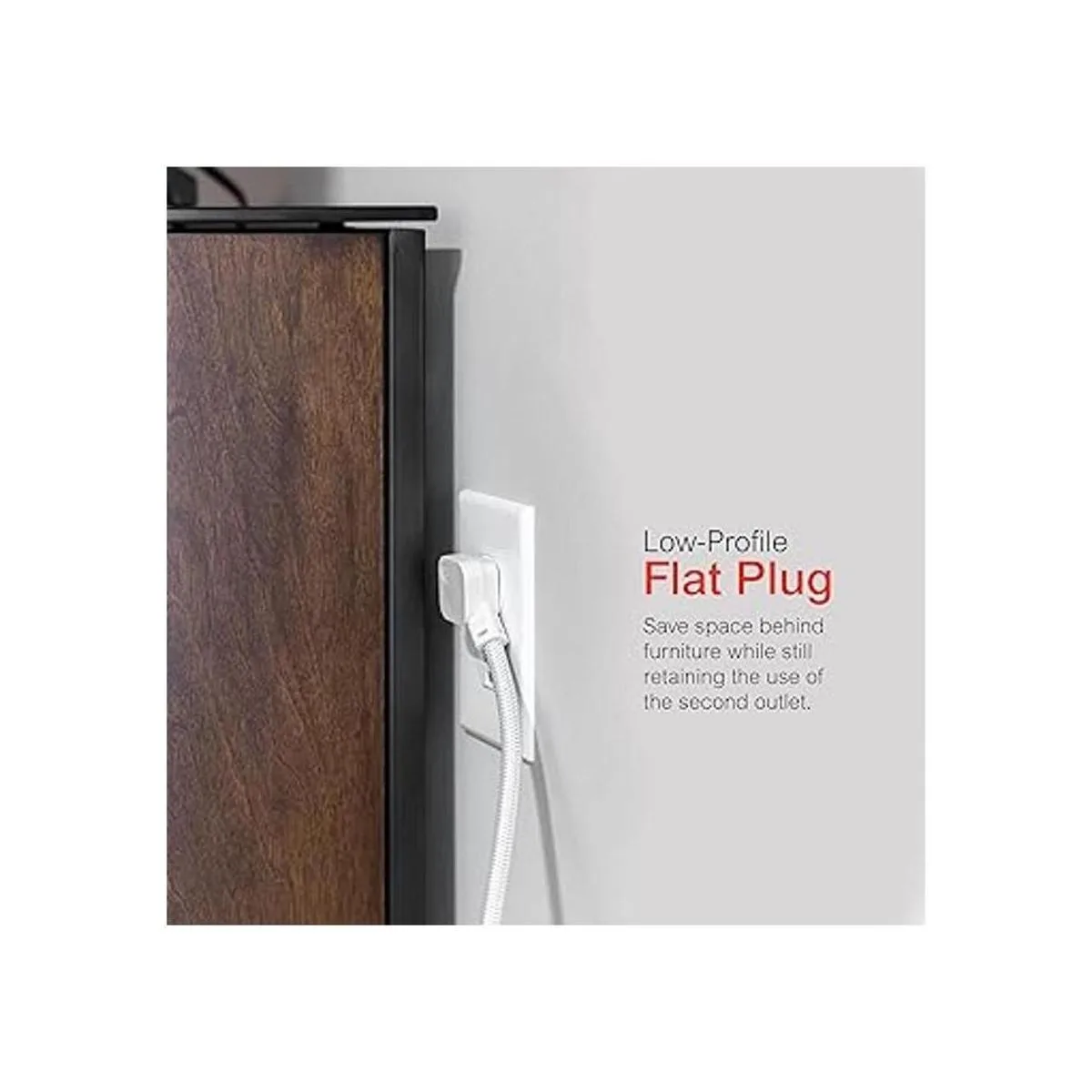 Cable de extensión de enchufe plano: mantén los muebles y medios cerca de la pared con el enchufe plano de perfil bajo en el extremo de esta regleta de alimentación. El enchufe en ángulo permite que este cable de extensión se conecte al receptáculo sin bloquear la otra toma de corriente