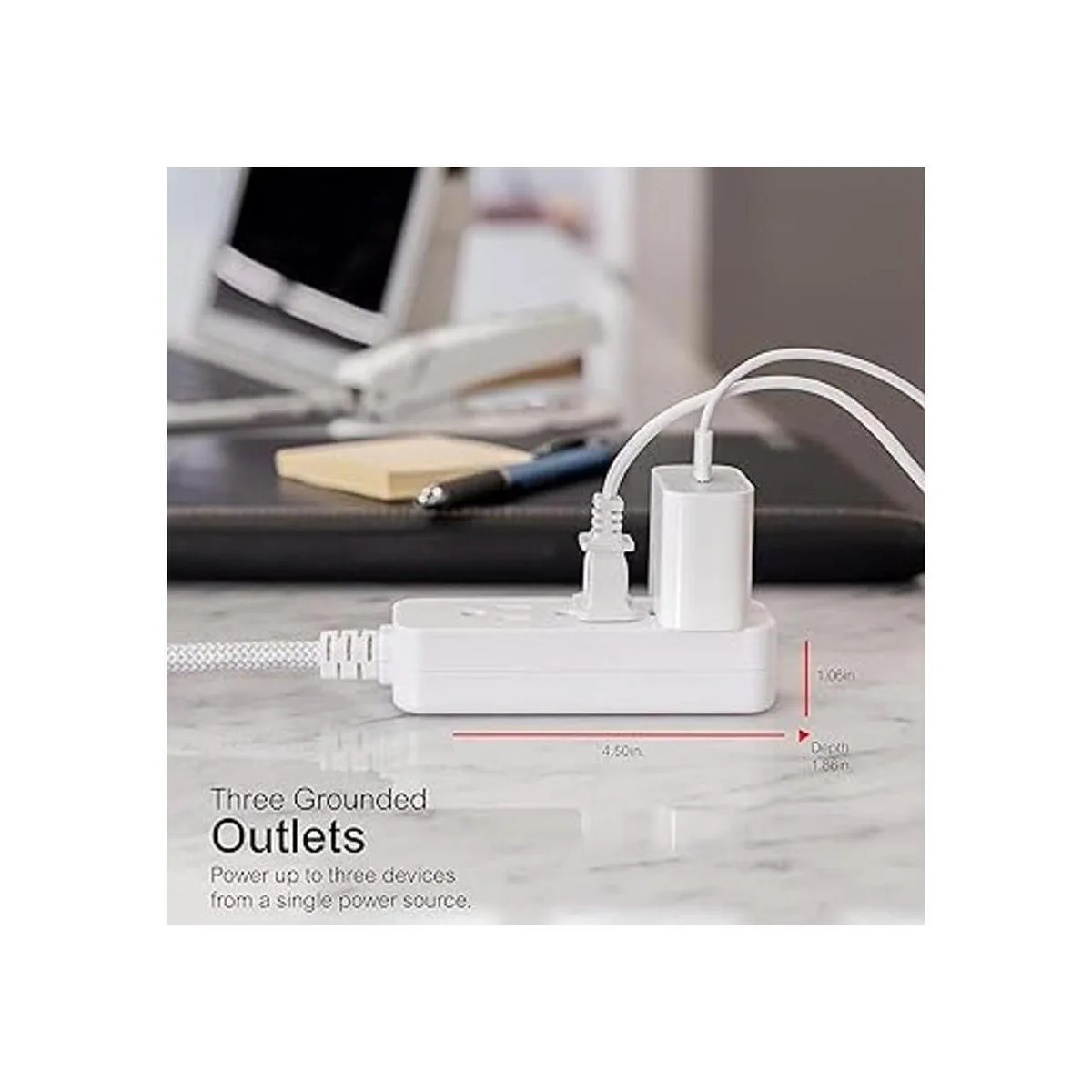 Potencia más: las 3 salidas y los 8 pies. El cable de alimentación te permite alimentar tu iPhone, Android, laptop, tablet, Nintendo Switch, Fitbit, reloj inteligente, altavoz Bluetooth, TV, sistema de sonido o lámparas en cualquier espacio.