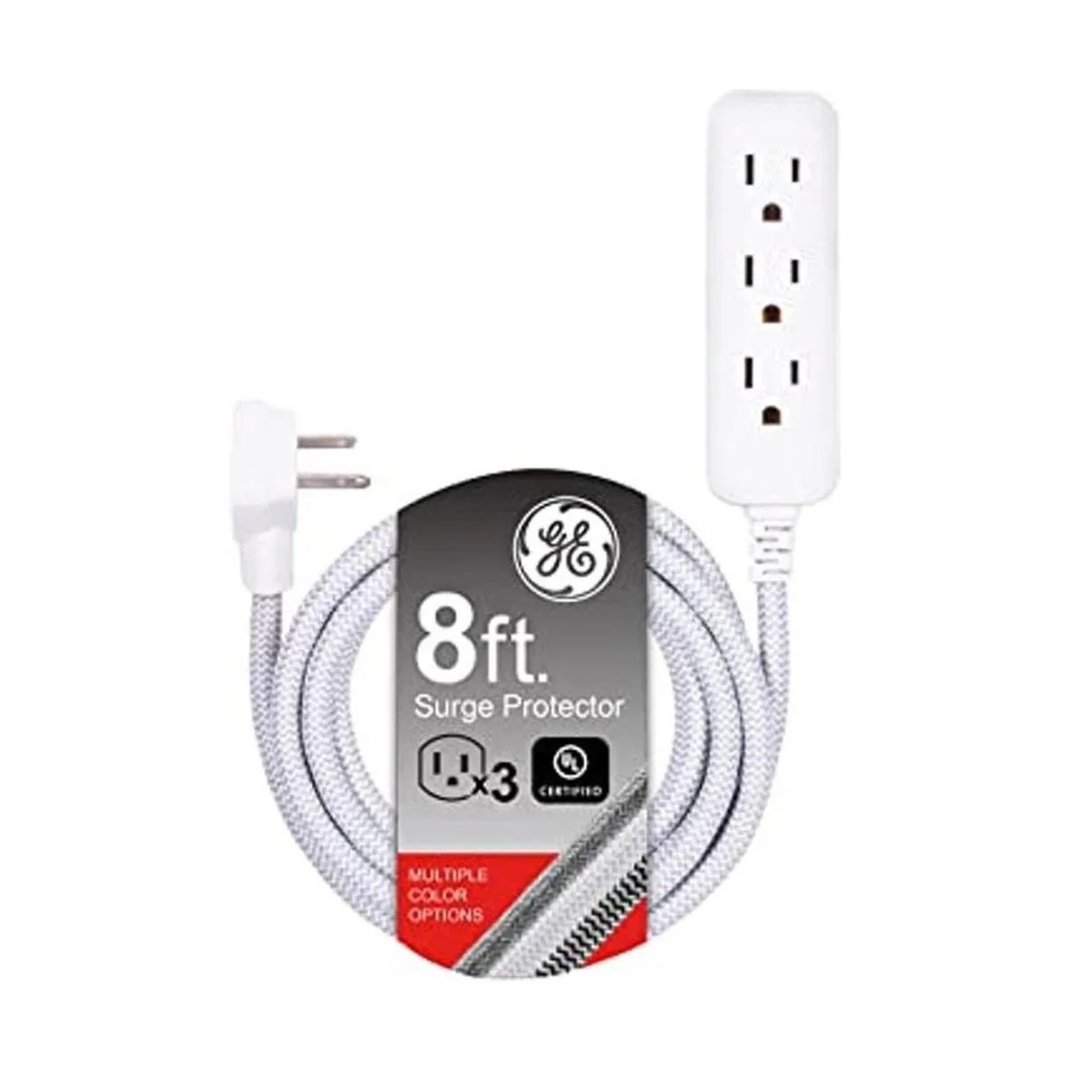 GE Designer Cable de extensión con protección contra sobretensiones, cable de alimentación trenzado, 15 pies, 3 tomas de tierra