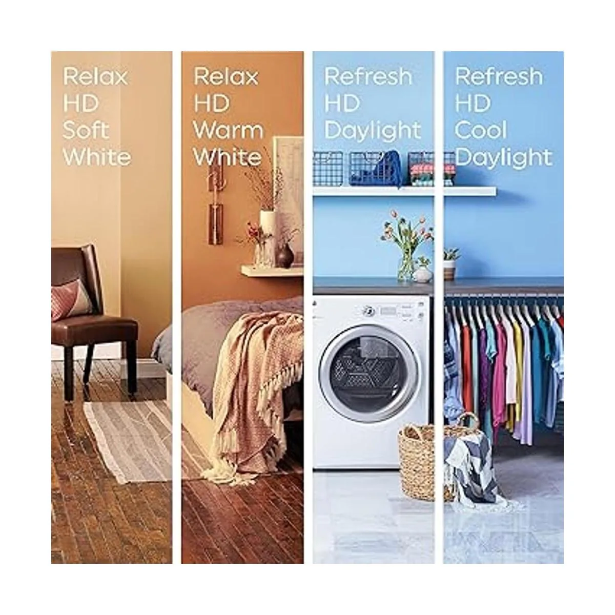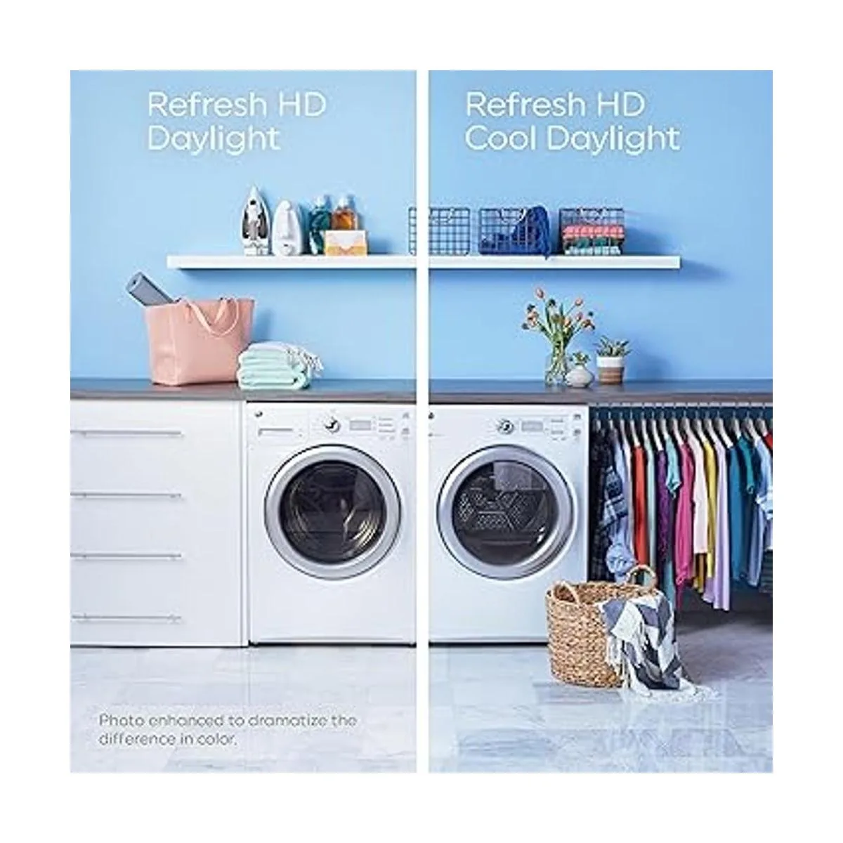 Las bombillas LED HD Refresh ofrecen una luz fresca y vigorizante perfecta para momentos energizantes y espacios activos. Utiliza bombillas LED Refresh HD en salas de juegos, oficinas en casa y lavandería.