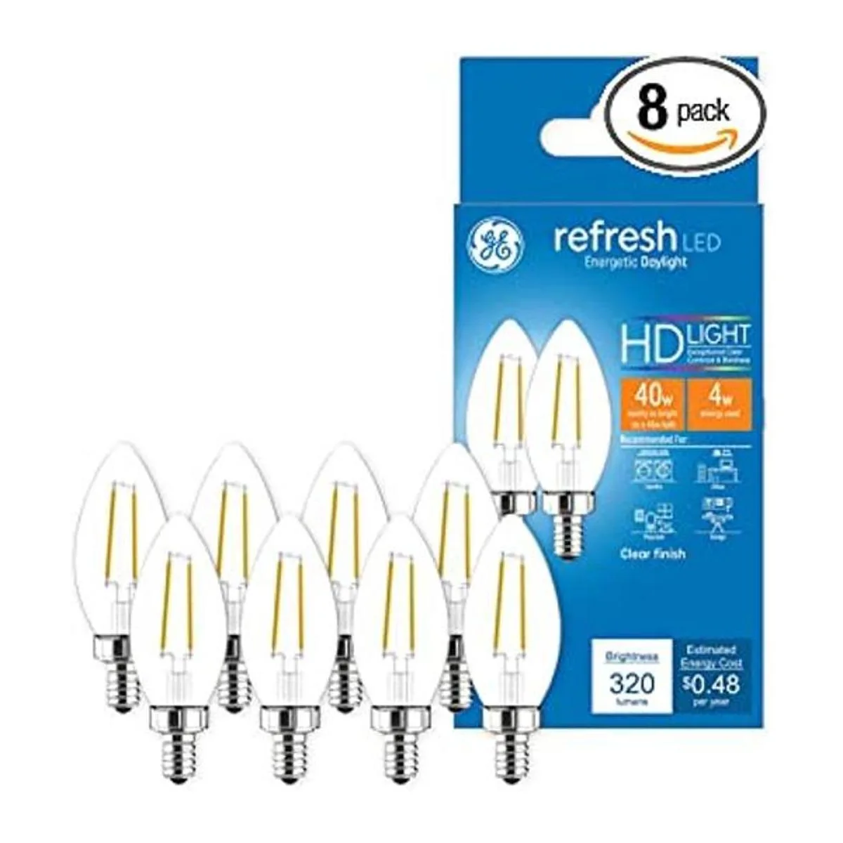 Las bombillas LED GE candelabra reemplazan las bombillas incandescentes tradicionales de 40 vatios mientras que solo utilizan 4 vatios.