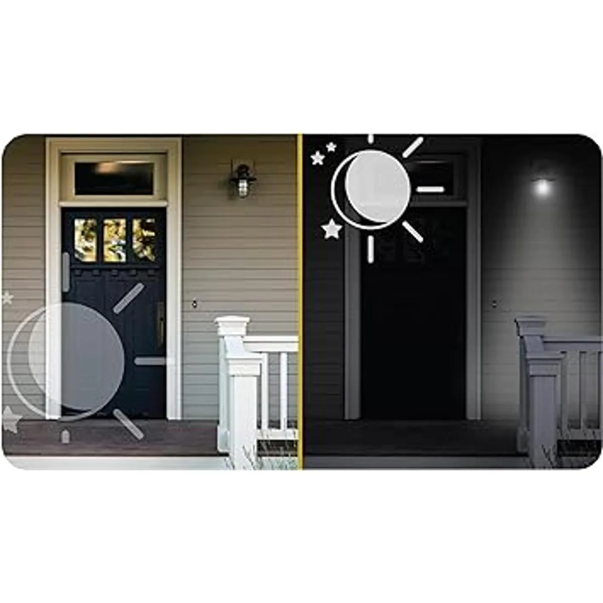 Luces LED de bajo consumo: las bombillas de luz del atardecer al amanecer exteriores reemplazan perfectamente tus bombillas exteriores de 60 W y fueron diseñadas para usar solo 8 vatios, alargando la vida de tus luces de sensor de movimiento y reduciendo tus costes de energía.