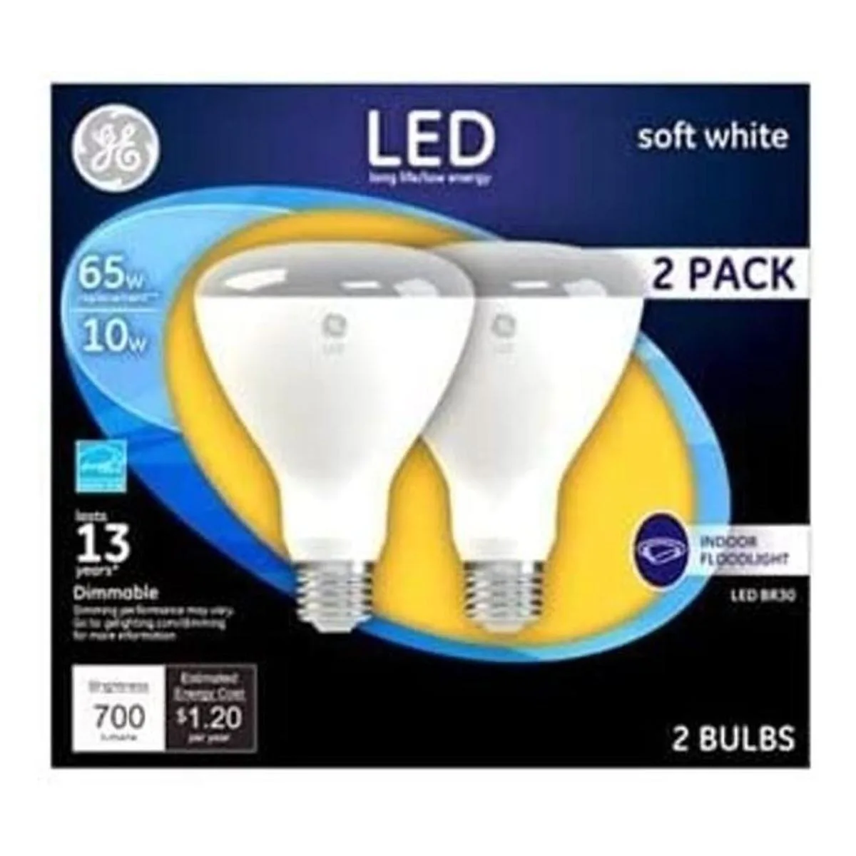 Ge Lighting Bombilla LED para interior intensidad regulable, Br30, luz blanca suave, 700 lúmenes, 10 W reemplazo de 65 W 2 unidades