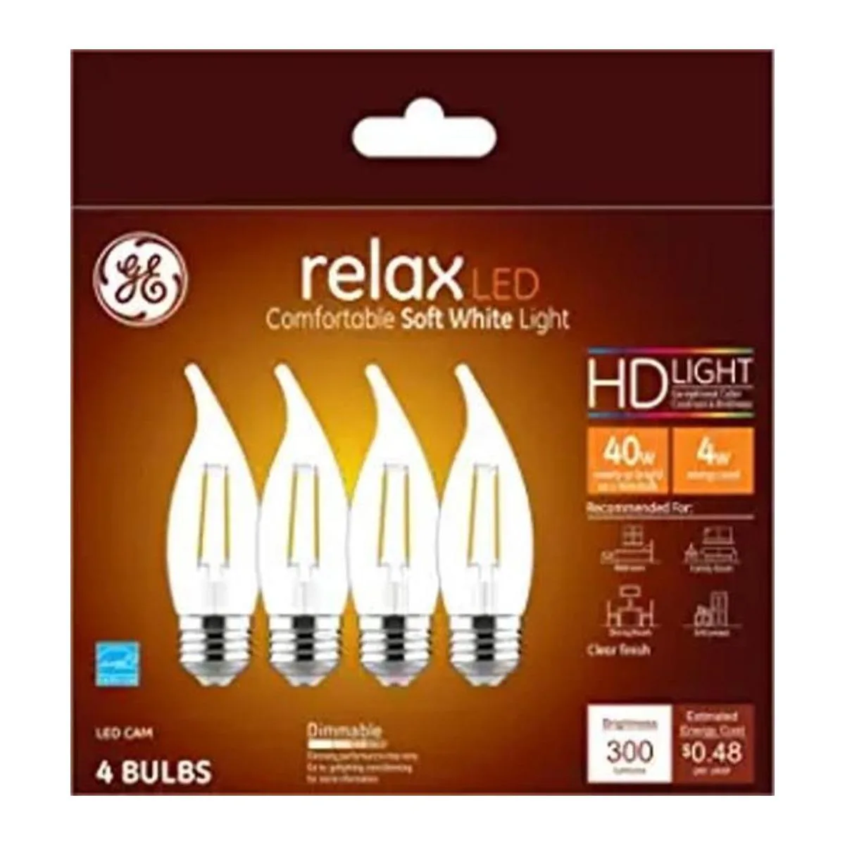 GE Relax Bombillas LED de 4 vatios equivalente a 40 vatios, luz HD blanca suave, acabado transparente, base media, regulable paquete de 4