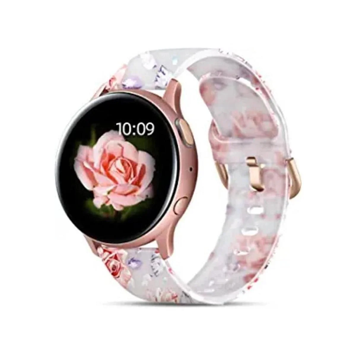 Contenido del paquete: 1 correa de silicona para Samsung Galaxy Watch 5 Band Watch 5 Pro/Samsung Galaxy Watch 4 Band Watch 4 Classic/Active 2 Watch 1.575 in/1.732 in, bandas florales, ancho: 0.787 in