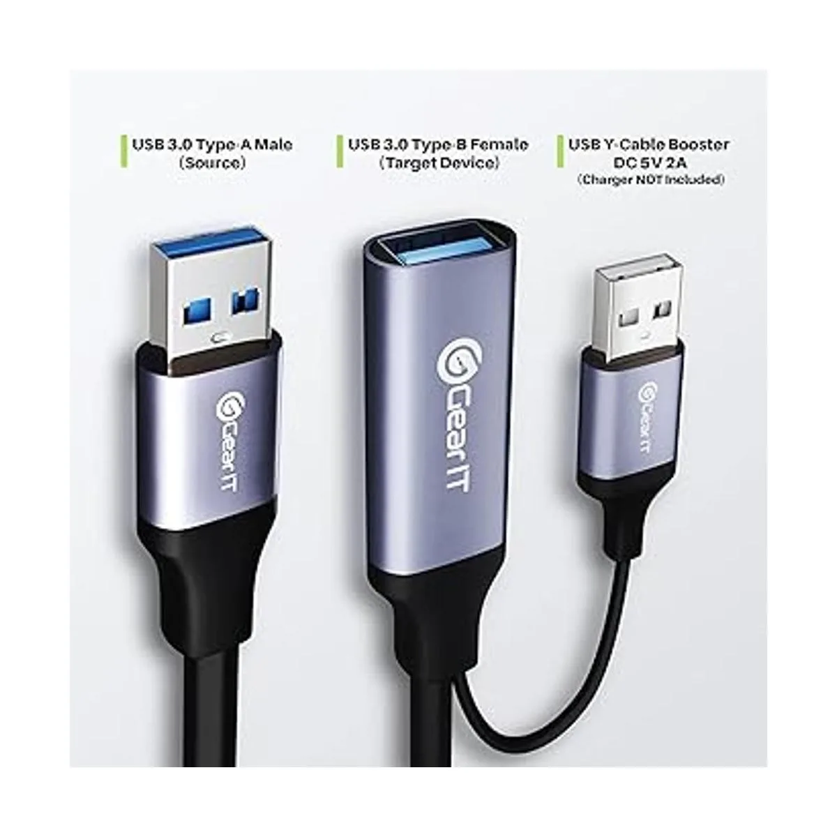 Diseño y materiales superiores: estable, duradero y más rápido: el cable de extensión activo GearIT SuperSpeed USB 3.0 está fabricado en una fábrica de nivel 1 con conectores chapados en oro, cables de cobre desnudo, papel de aluminio, blindaje trenzado y cable adaptador de cable en Y de potencia USB