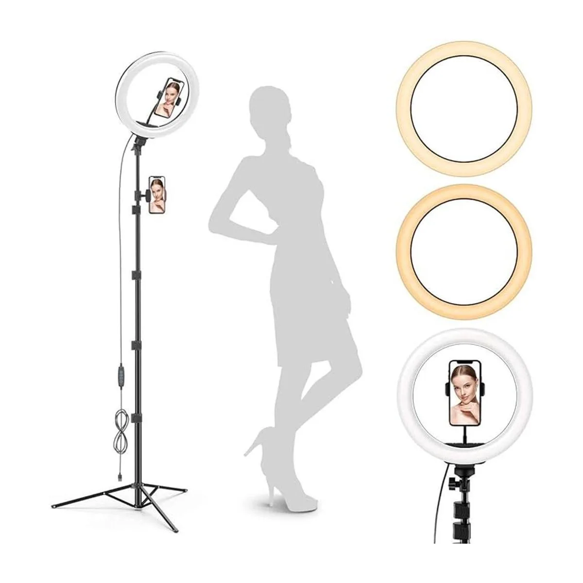 brillo impecable: nuestro anillo de luz selfie de tamaño perfecto de 10 pulgadas proporciona una imagen más brillante y uniforme, por lo que puedes lucir tan bien en la cámara como tú lo haces