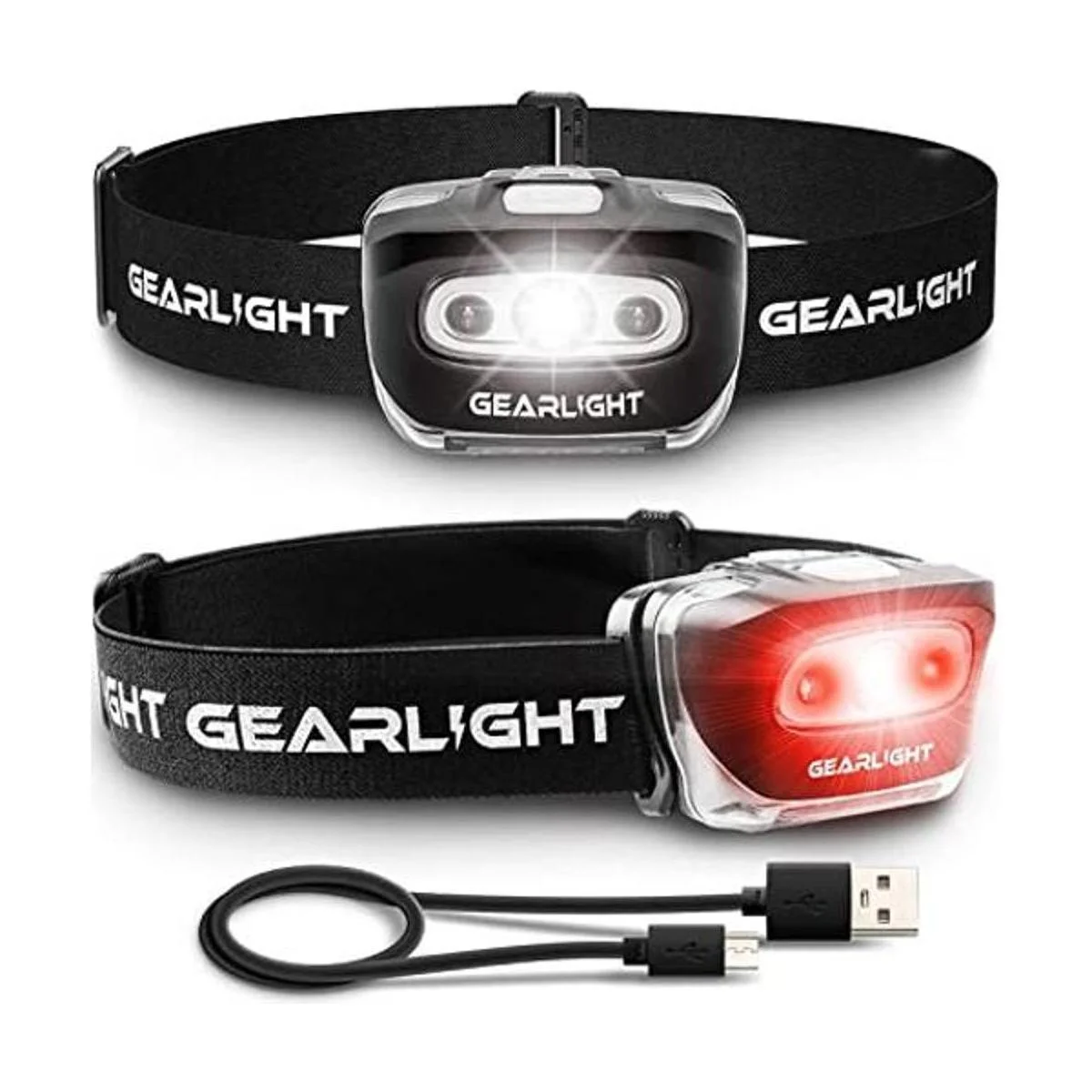 GearLight Linterna de faros delanteros recargable por USB, S500 para correr, acampar y exteriores, faros delanteros LED para faros delanteros, luz de cabeza para adultos, niños, equipo de emergencia paquete de 2
