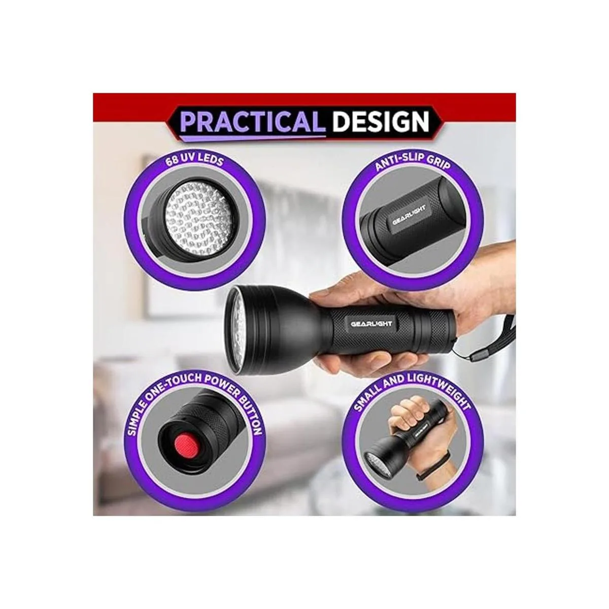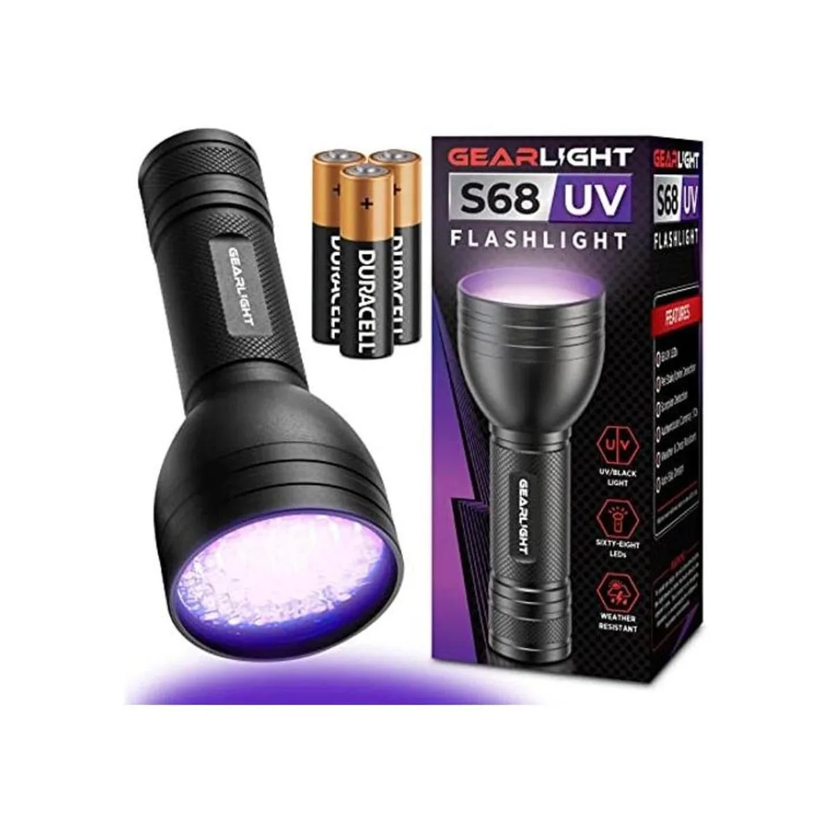 GearLight S68 Linterna UV con baterías, luz negra, portátil, portátil, de mano, 68 linternas LED de luz negra, luces ultravioleta para orina de mascotas, inspección de hotel y detección de chinches