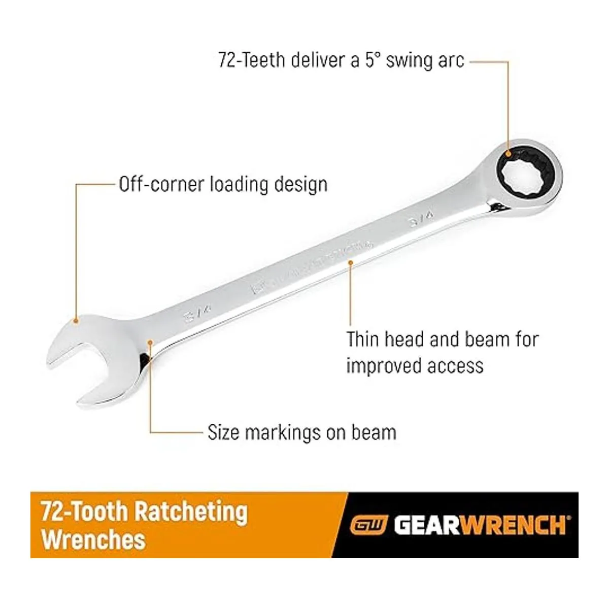 72 dientes, llave sólo se gira 5 grados para mover el tornillo.