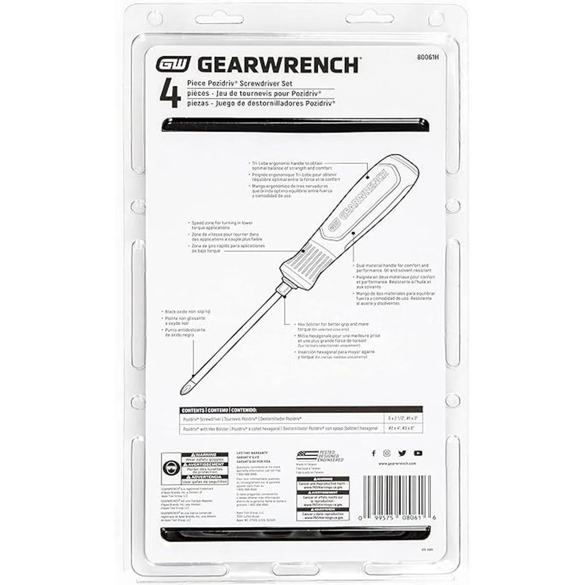 GEARWRENCH Juego de destornilladores Pozidriv de doble material de 4 piezas, 80061H