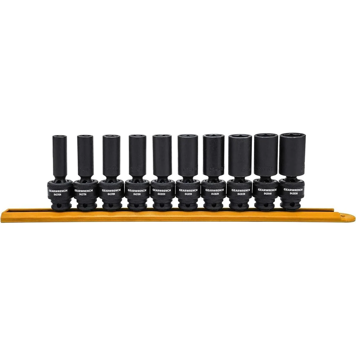 Gearwrench El juego de llaves de impacto universales profundas tiene un diseño de enchufe flexible profundo que proporciona más acceso a los sujetadores en confines estrechos