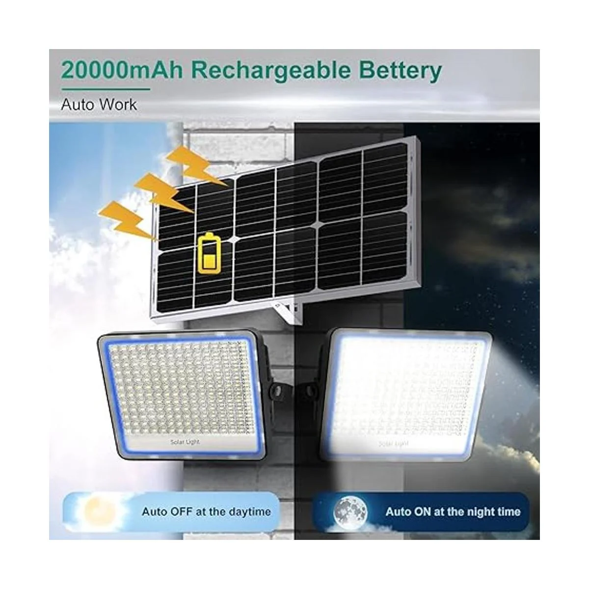Alto brillo y atardecer hasta el amanecer: batería de litio de alta capacidad de 300 W, 24.000 lúmenes y 20.000 mAh garantizan un alto brillo y un largo tiempo de trabajo desde el anochecer hasta el amanecer. El sensor de luz enciende la luz al anochecer y apaga al amanecer.
