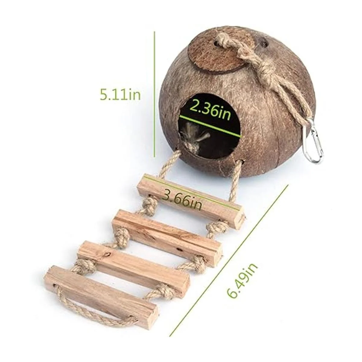 Cabaña de coco natural: la caseta para pájaros de coco de Gecko está hecha de una piel de cáscara de coco cruda con escalera, natural puro sin contaminación, seguro para mascotas. La escalera de cuerda de madera y la textura de coco fomentan el ejercicio muscular de tu mascota. Mantendrá saludable y activo.