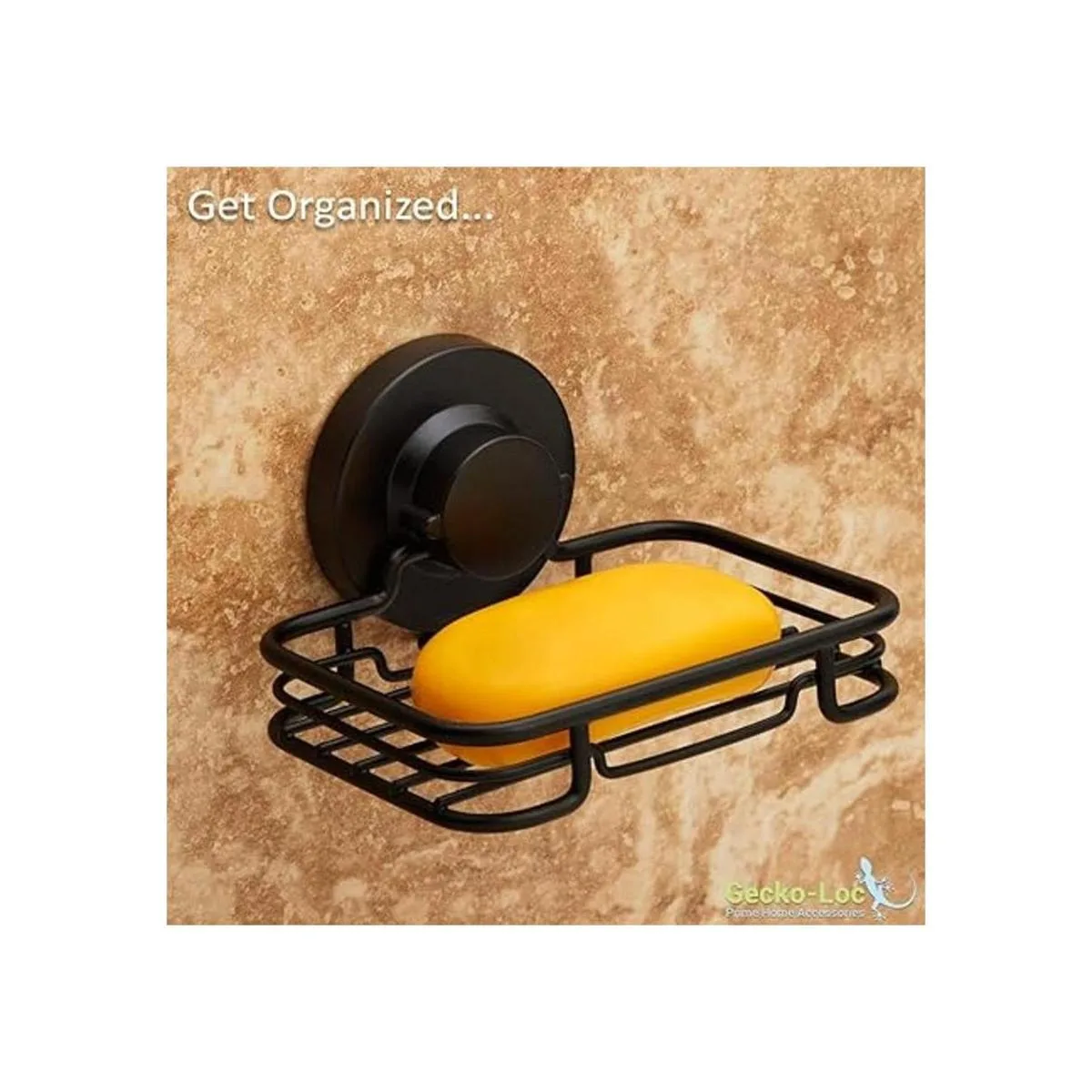 GeckoLoc Soporte para jabonera con ventosa para baño o cocina, fregadero o ducha, color negro