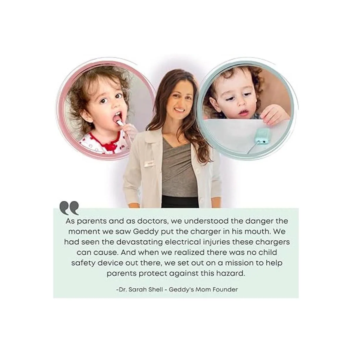 Ganador de premios. Geddys Mom ha recibido el premio PTPA TOP PRODUCTO 2022, premio NAPPA 2022, premio Good House Keeping PRENTING AWARD, producto del año a prueba de bebés de IIA, finalista en los premios JPMA Innovation. Fabricadas en los Estados Unidos, nuestras fundas de seguridad están hechas de un plástico reciclable no conductor sin BPA con un bloqueo resistente a los niños, no contiene piezas pequeñas y sin colores brillantes. Como todos los dispositivos de prueba de bebés, no reemplaza la supervisión de un adulto.