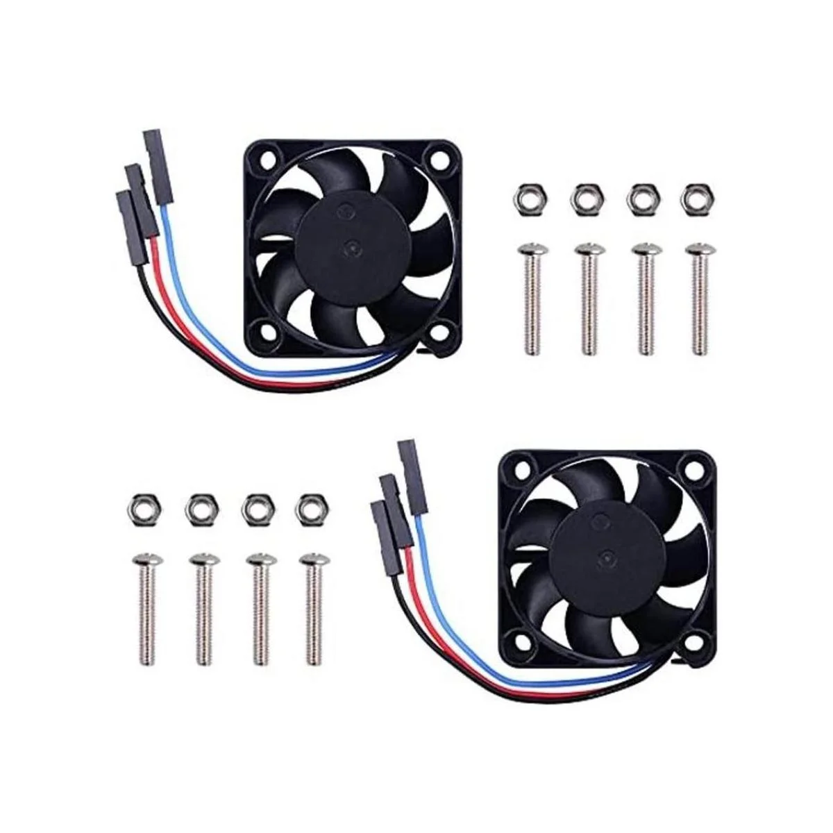 El paquete incluye: 2 ventiladores de velocidad ajustable de 5 V para RPi; 8 tornillos solitarios M3 x 16; 8 tuercas M3