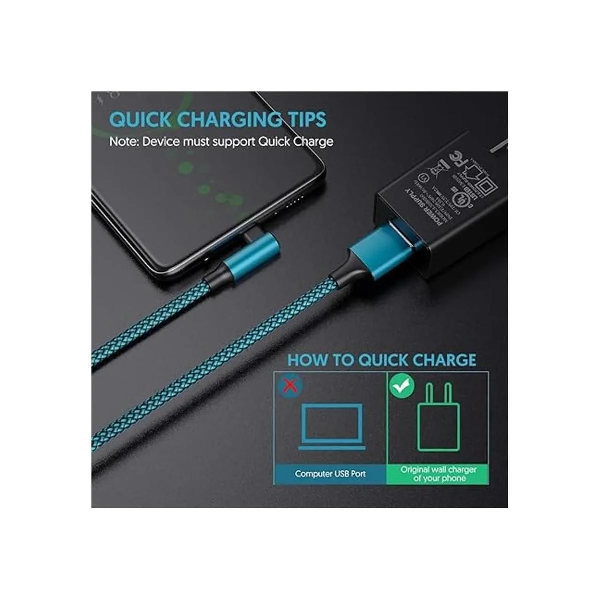 Contenido del paquete: 2 cables de carga USBA a USBC de nailon trenzado de alta calidad 10 pies
