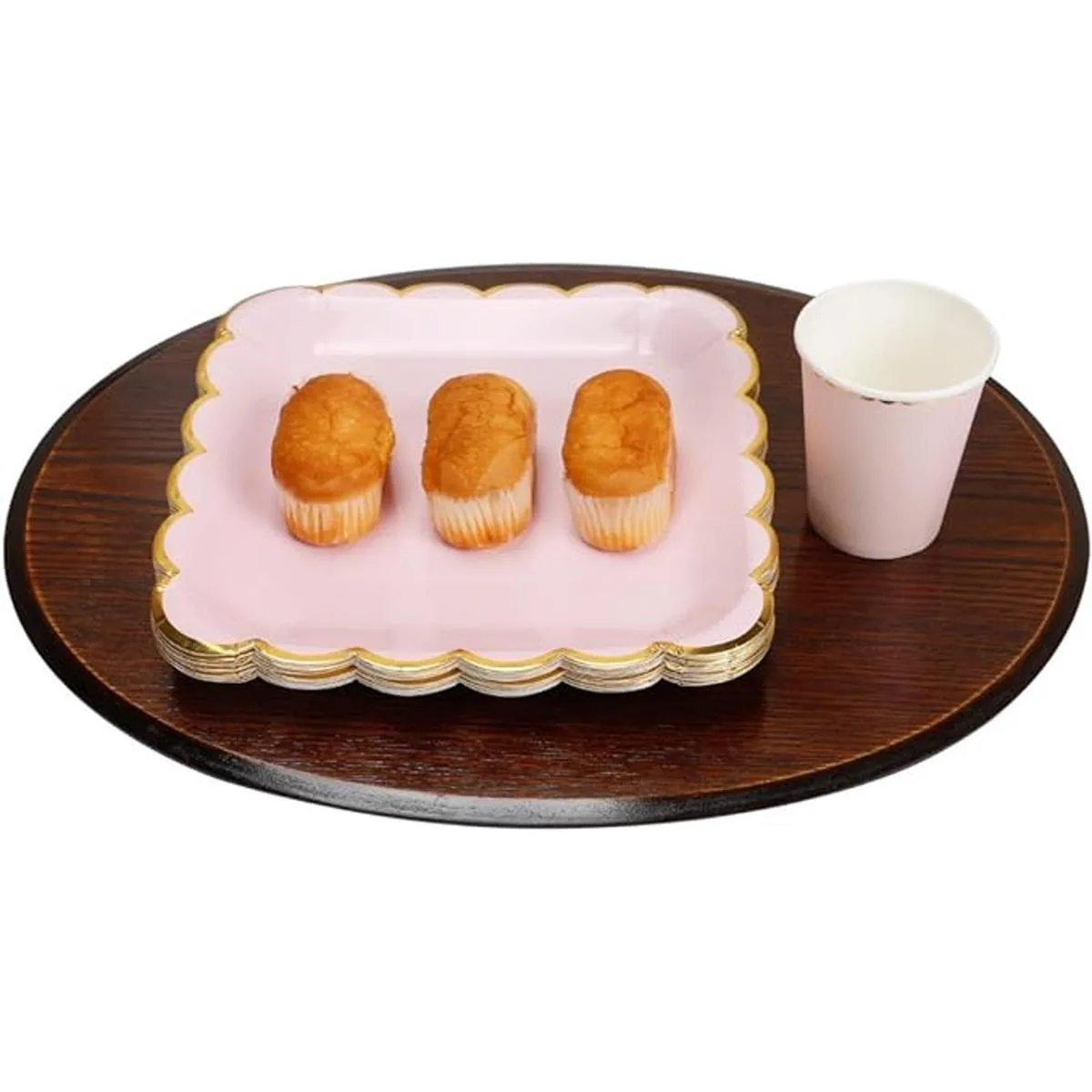 Geeklife Platos de papel dorado para fiesta, con borde dorado metálico de 9 pulgadas, juego de platos decorativos de color rosa, 20 unidades