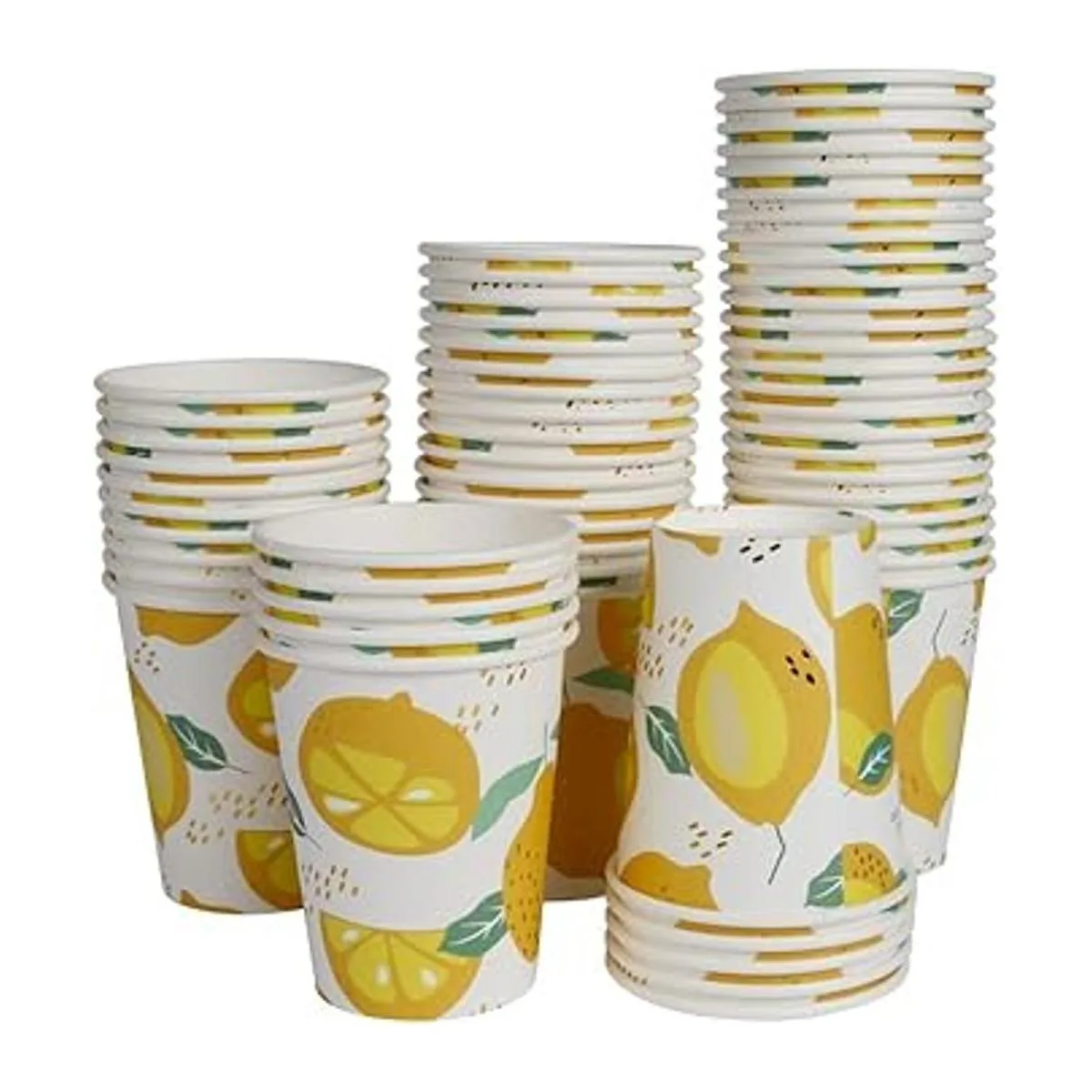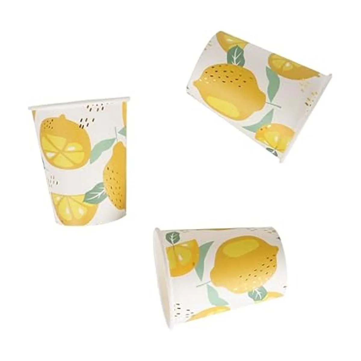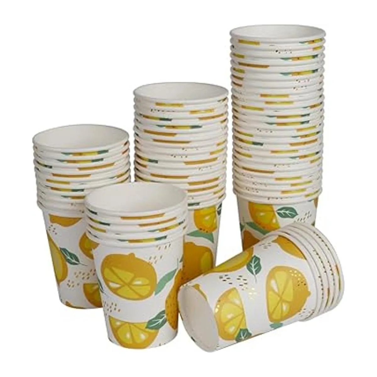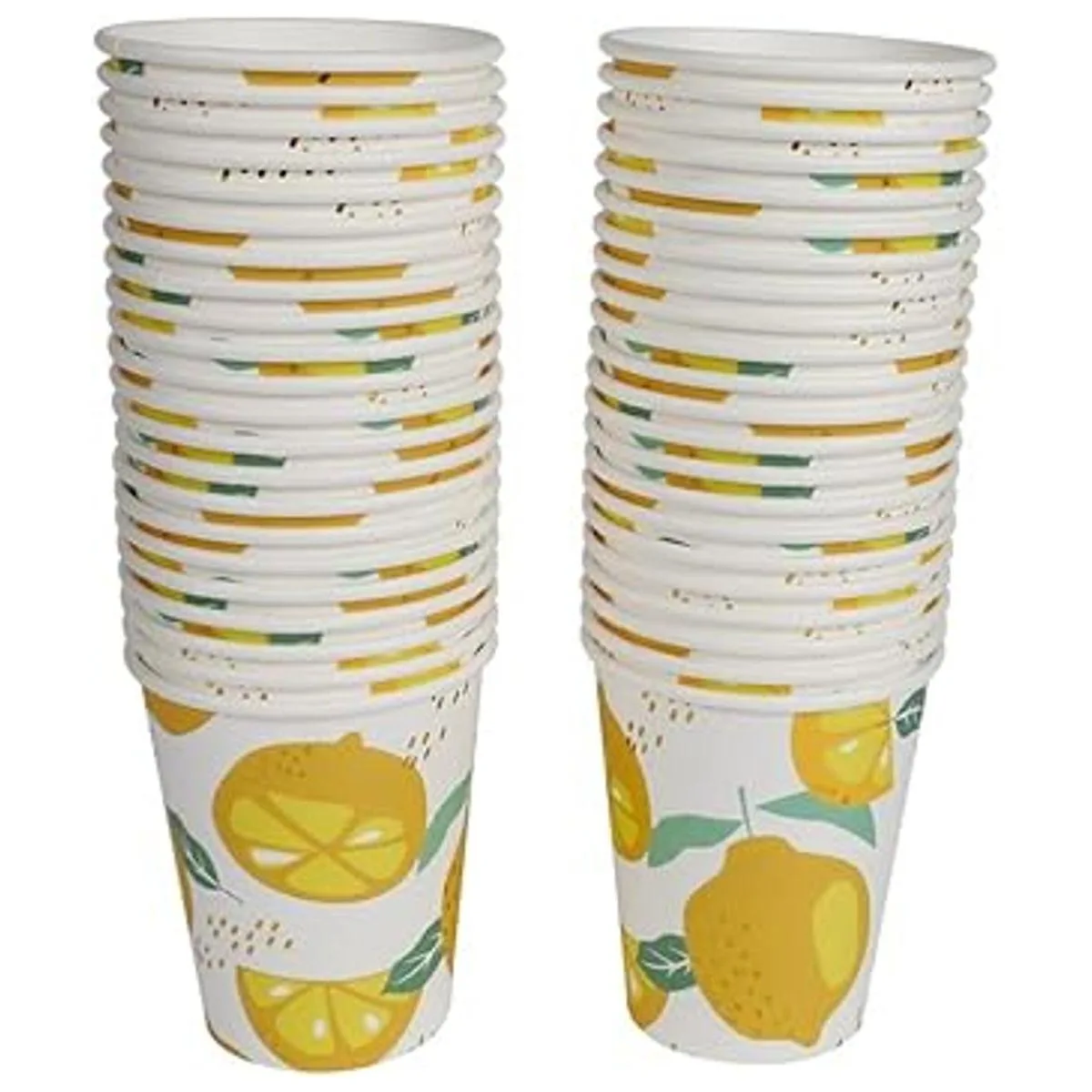 Geeklife Tazas de papel de limón dorado para fiestas, juego de tazas decorativas desechables de frutas doradas nobles de 9 onzas, tazas de papel de aluminio dorado brillante a granel, 40 piezas