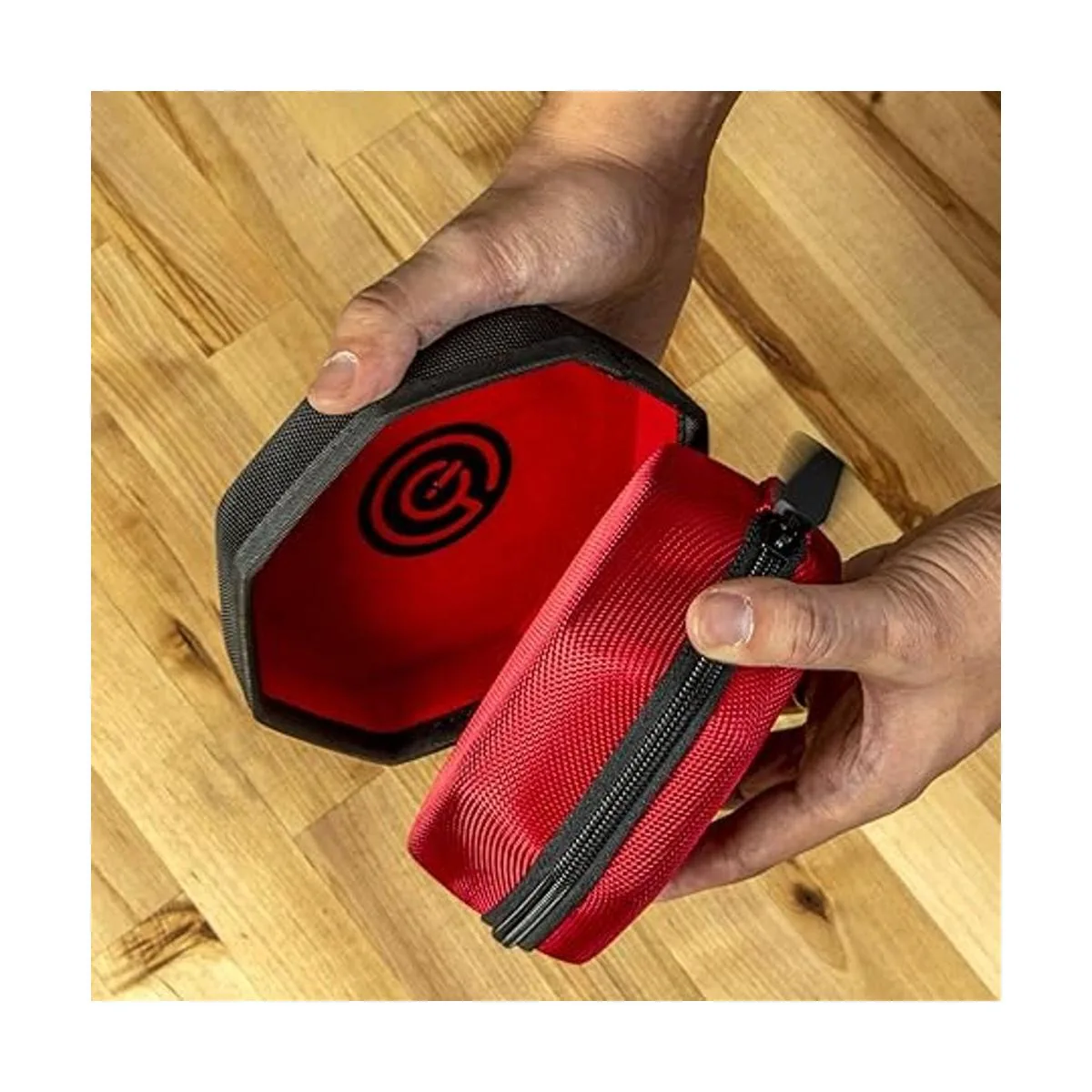 Una vez, dos veces, dados, agradable: la funda de dados de espuma de gofre protege silenciosamente tus dados durante el transporte. La bandeja de dados forrada de fieltro a juego se anida debajo de la funda y se desmonta para un rodamiento suave.