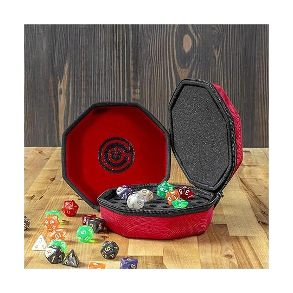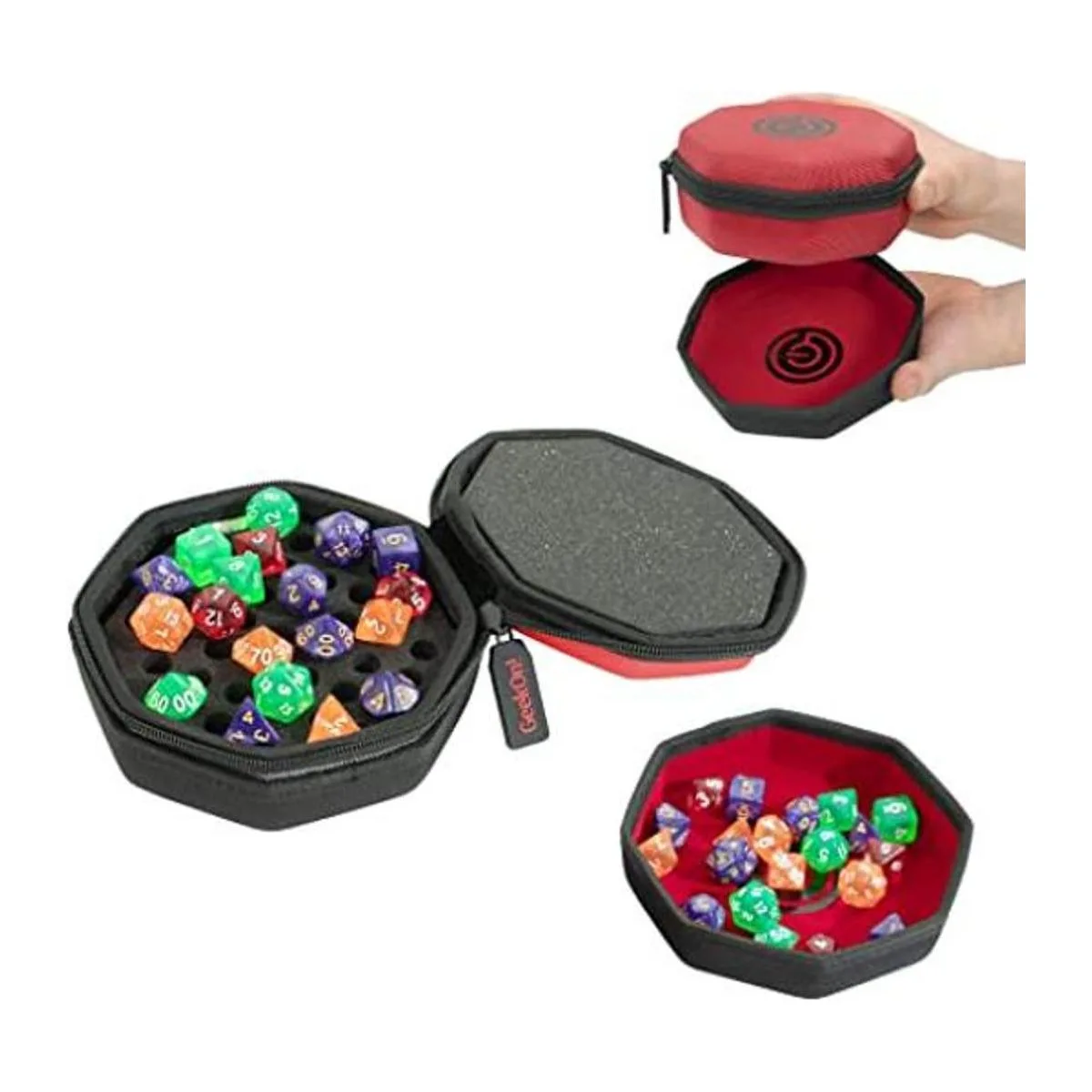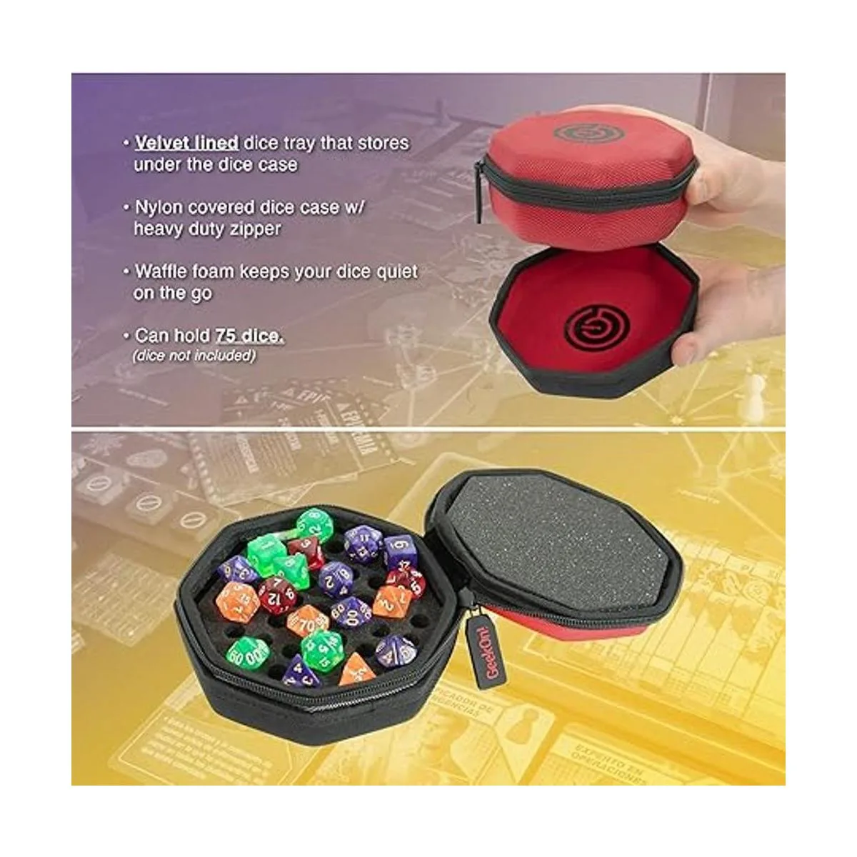 GeekOn Funda protectora acolchada para dados y bandeja integrada de dados de fieltro para juegos de mesa, juegos de mesa y juegos de rol, soporta y protege más de 75 dados. Perfecto para la noche de juegos rojo