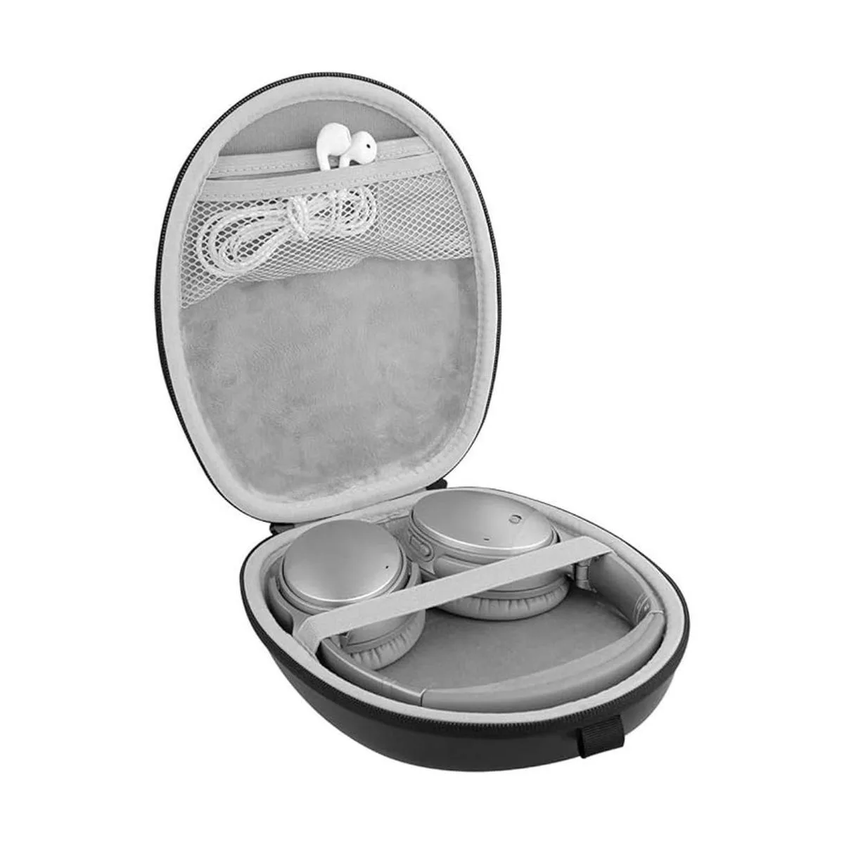 Geekria UltraShell Funda compatible con auriculares Bose QuietComfort QC45, QC35, QC3, QC2, QC15, AE 2i, bolsa de transporte de repuesto con almacenamiento de cables negro
